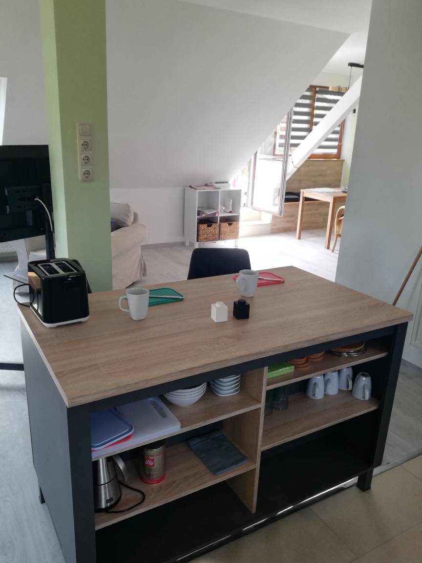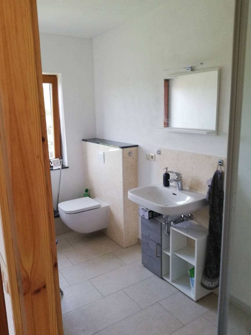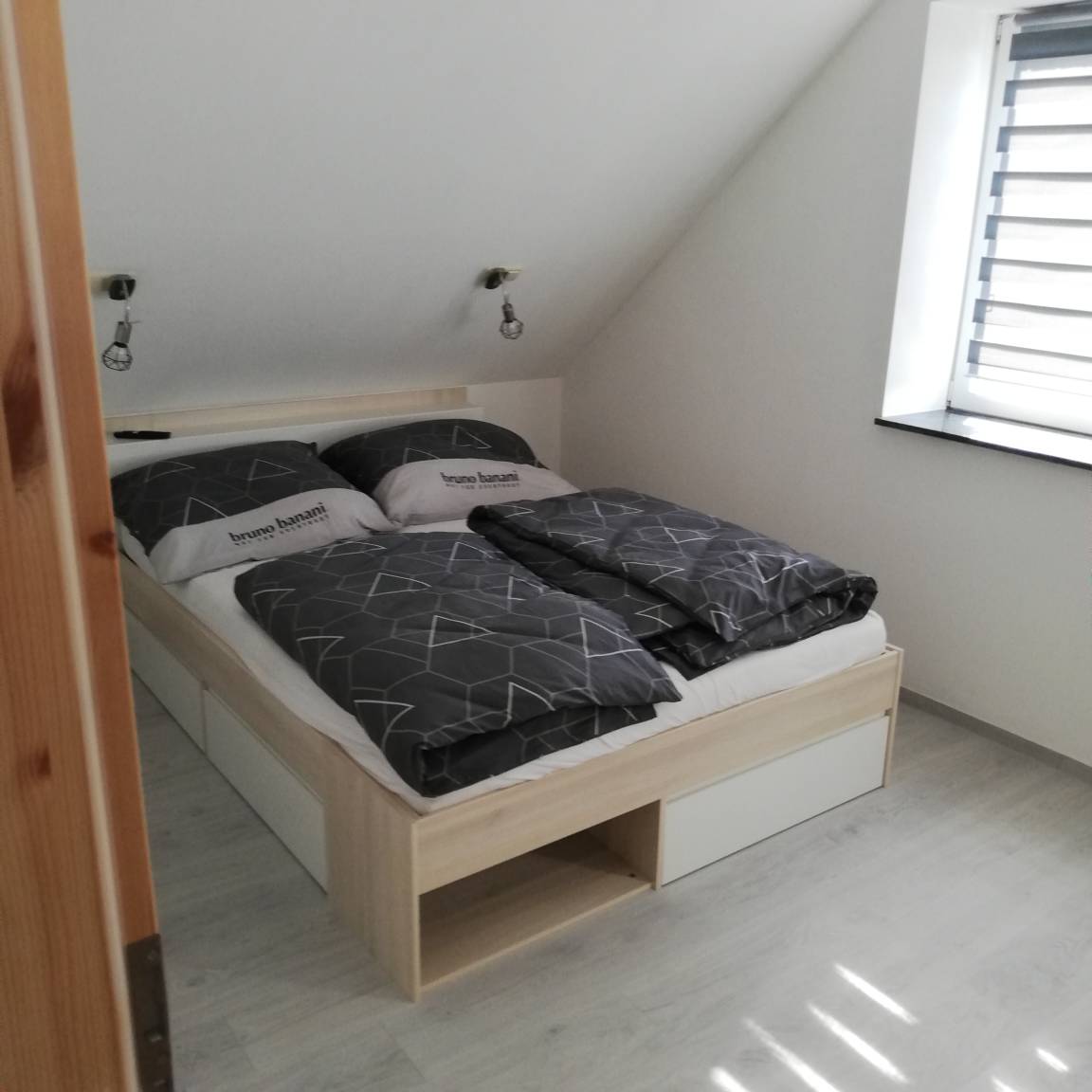 Sehr ruhige, mitten im Dorf liegende Ferienwohnung zu vermieten. Die Wohnung mit einem separaten Schlafzimmer (1,40m Doppelbett) und einer ausziehbaren Schlafcouch (1,40m) im Wohnbereich ist für 3 Personen geeignet . Wohnzimmer/Küche (mit Tresen) und einer Essecke bilden ein großen L . Modernes Badezimmer mit Fußbodenheizung und Dusche. Sat TV (im Wohnzimmer auf Ständer beweglich, im Schlafzimmer Wandmontage) und kostenfreies WLAN sind vorhanden. Die Küche ist ausgestattet mit Kühlschrank, Geschirrspüler, Kaffeemaschine, Herd, Backofen, Mikrowelle, Toaster. Eine eigene Waschmaschine steht im Aufgangsbereich zur Verfügung und auf der sehr großen Dachterrasse (45 qm) kann man sich entspannen und grillen.