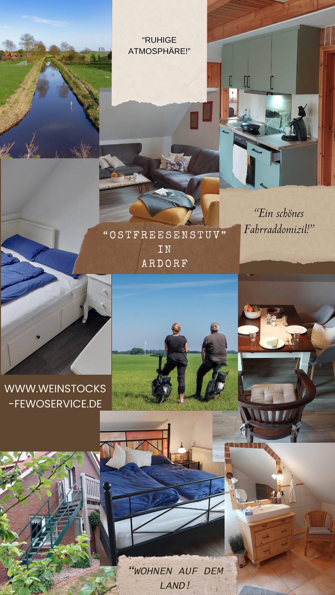 Lust auf Urlaub in der Idylle? Dann buchen Sie unsere schöne Ferienwohnung in Ardorf! Genießen Sie Ihren Urlaub auf 50 m² mit ausreichend Platz für bis zu 4 Personen. DIE Wohnung für Radurlaub in Ostfriesland!