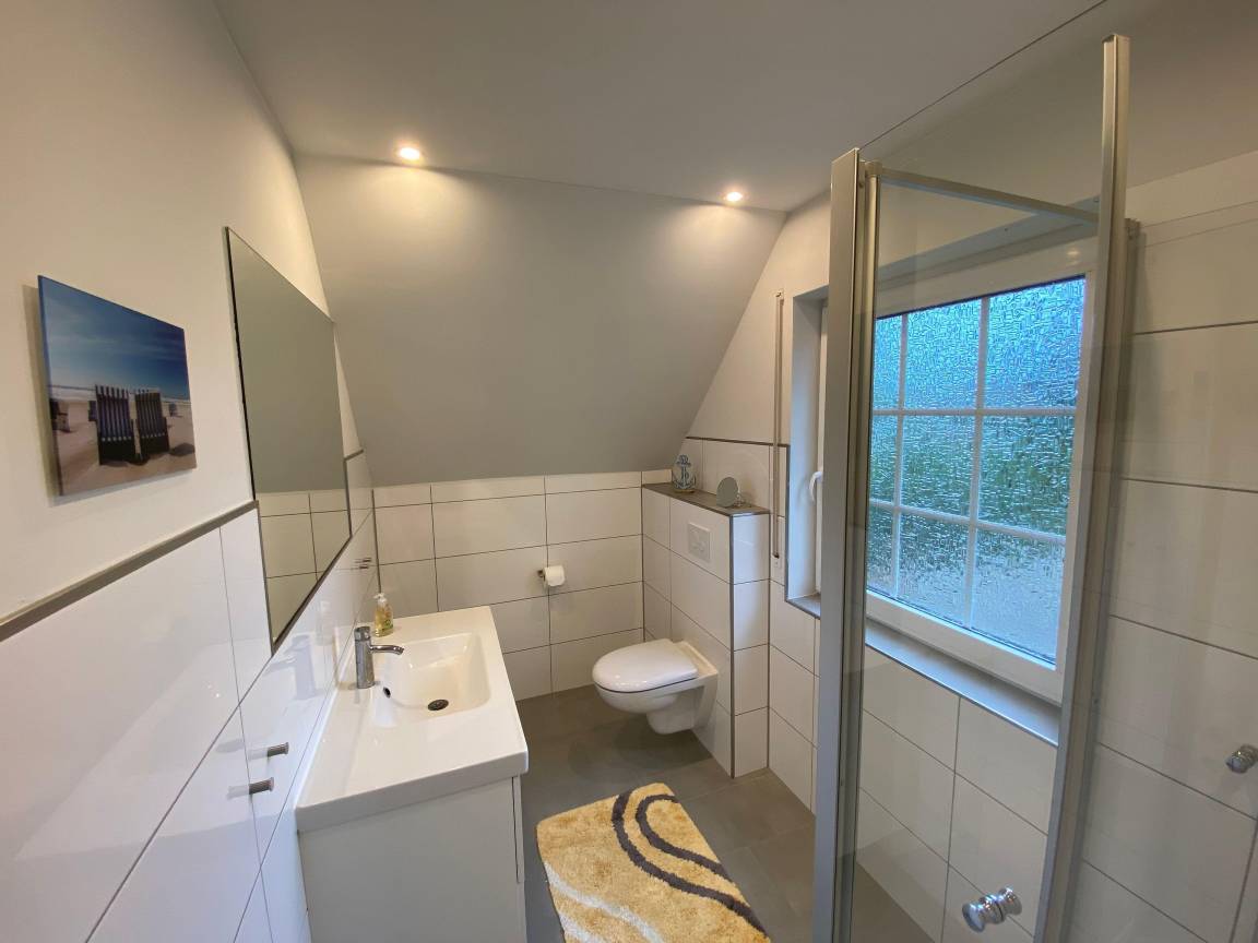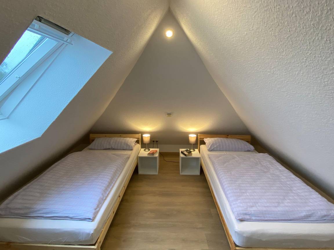 Im Erdgeschoss verfügt das Haus über ein großes, helles Wohnzimmer mit Sofalandschaft und 50 Zoll großem SAT-TV, Essbereich mit massivem Holzesstisch sowie einer separaten, sehr gut ausgestatteten Küche (mit Mikrowelle und Spülmaschine). Weiterhin befindet sich im EG ein neues Gäste-WC mit Handwaschbecken. Vom Wohnzimmer aus haben Sie Zugang zur sonnigen Terrasse sowie dem großen Garten. Im 1. OG finden Sie zwei Schlafzimmer (eins davon mit Doppelboxspringbett und das zweite mit zwei Einzelbetten) sowie ein helles und modernes Bad mit übergroßer Dusche. Im Dachgeschoss befindet sich ein Schlafstudio mit zwei weiteren Einzelbetten.