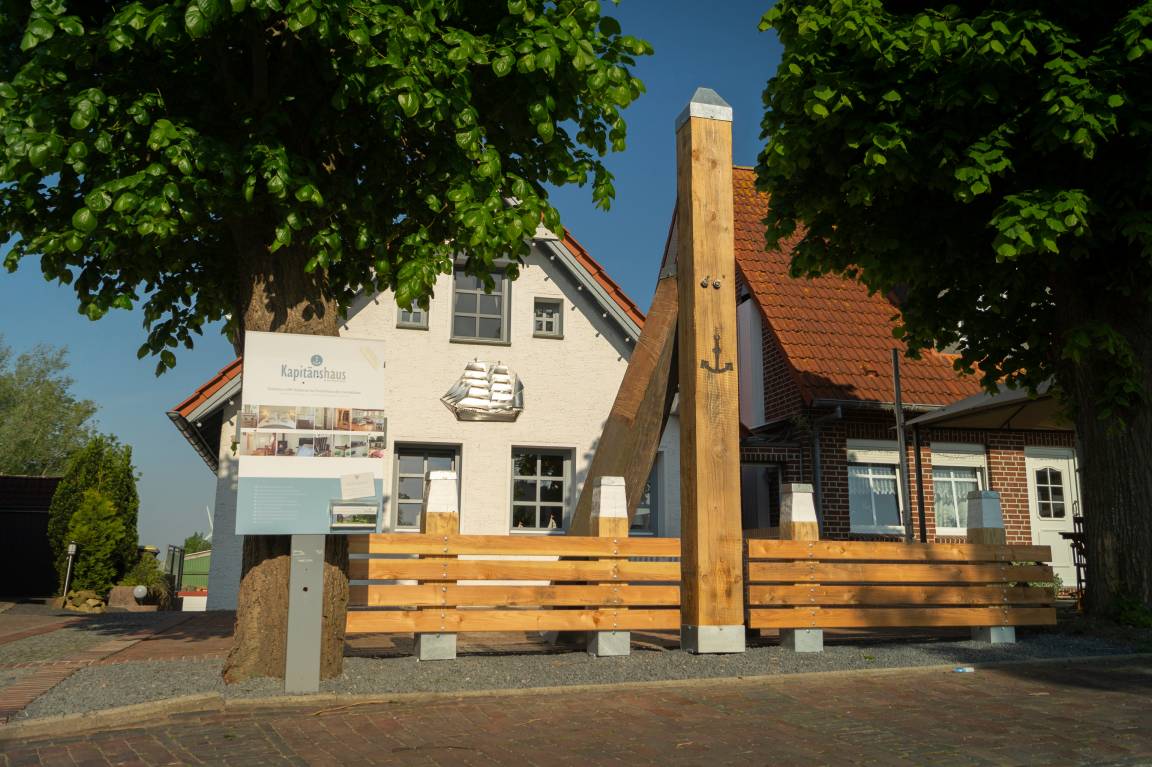 Das traditionsreiche Haus aus 1880 wurde 2019 komplett saniert, hochwertig ausgestattet und mit viel Liebe zum Detail eingerichtet. Seit Sommer 2016 sind die Pforten des ehemaligen Kapitänshauses für Feriengäste aus Nah und Fern geöffnet. Das freistehende Ferienhaus liegt in erster Reihe zur Kurpromenade, zwischen dem idyllischen Nordseeheilbad Carolinensiel und dem Nordseestrand von Harlesiel.