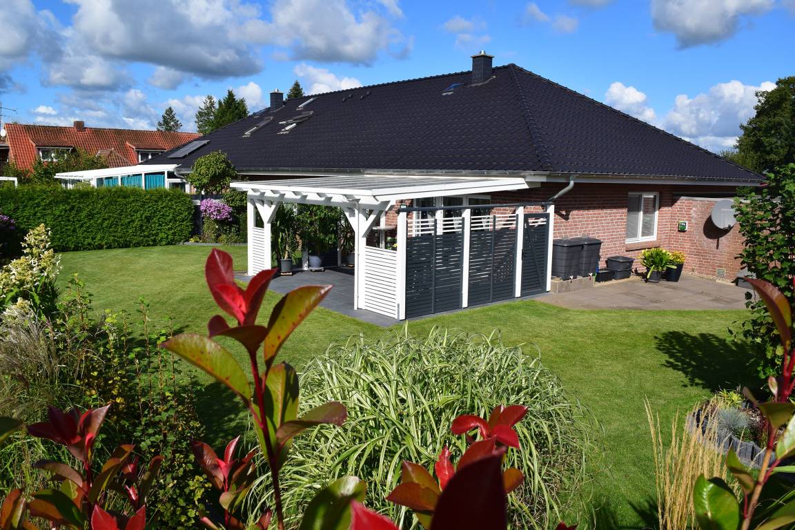 Der Garten steht Ihnen zur alleinigen Nutzung zur Verfügung. Hier befindet sich auch eine Abstell- und Lademöglichkeit für E-Bikes. Ihr PKW findet ebenfalls auf dem Grundstück Platz.