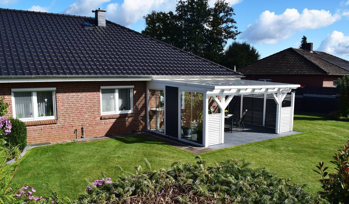 Das Ferienhaus im Bleitz bietet auf über 125qm viel Platz für bis zu 6 Personen. Es gibt ein Wohnzimmer, drei Schlafzimmer, eine Küche mit zusätzlichem Abstellraum, ein Bad, ein separates Gäste-WC und einen geschützten Garten mit großer überdachter Terrasse zur alleinigen Nutzung.