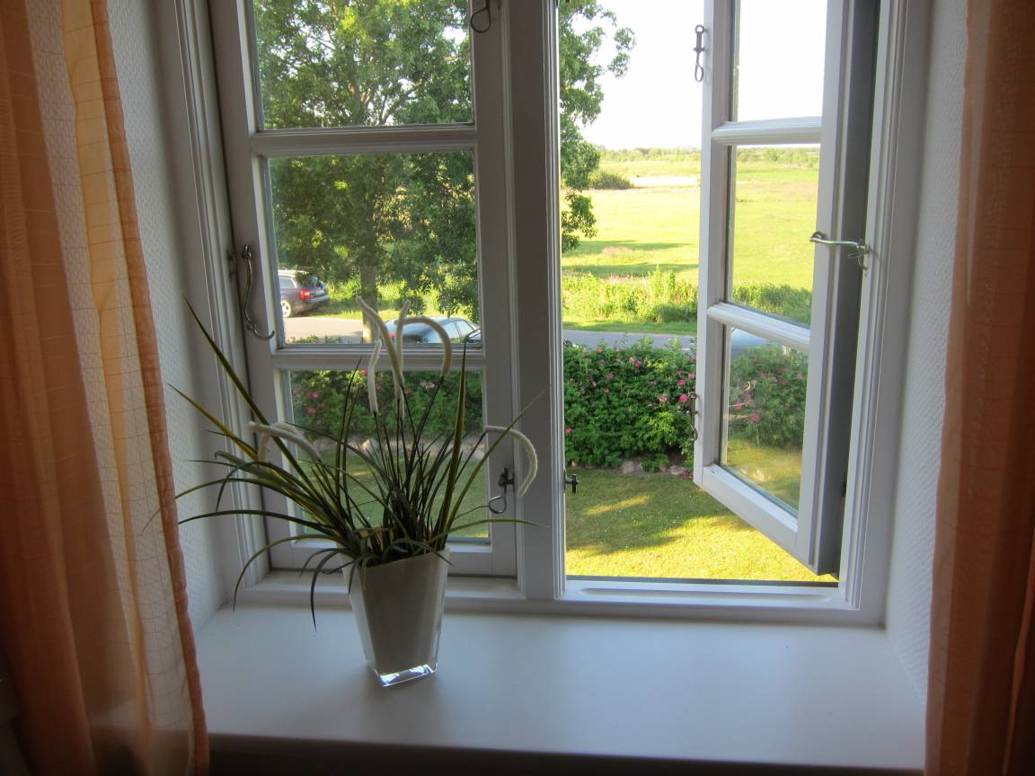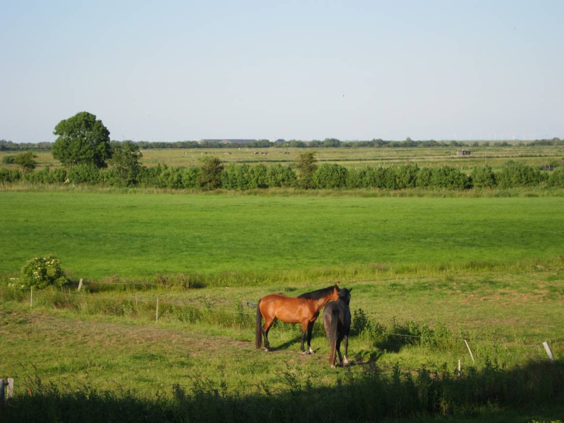 Vom Wohnzimmer aus haben unsere Gäste einen wunderbaren Weitblick in die Marsch.