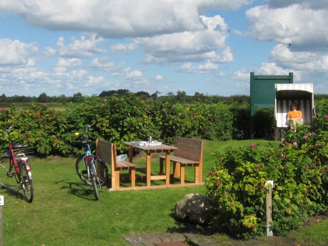 Ein fester Stellplatz für Ihr Auto ist ebenfalls vorhanden. Die Lage eignet sich aber auch sehr gut für Bahnanreisende (mit Busverbindung vom Hafen aus / Haltestelle Wrixum-West).