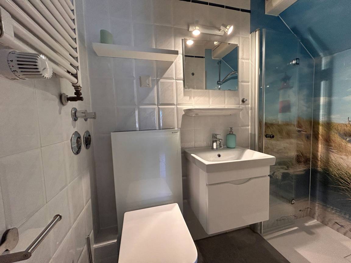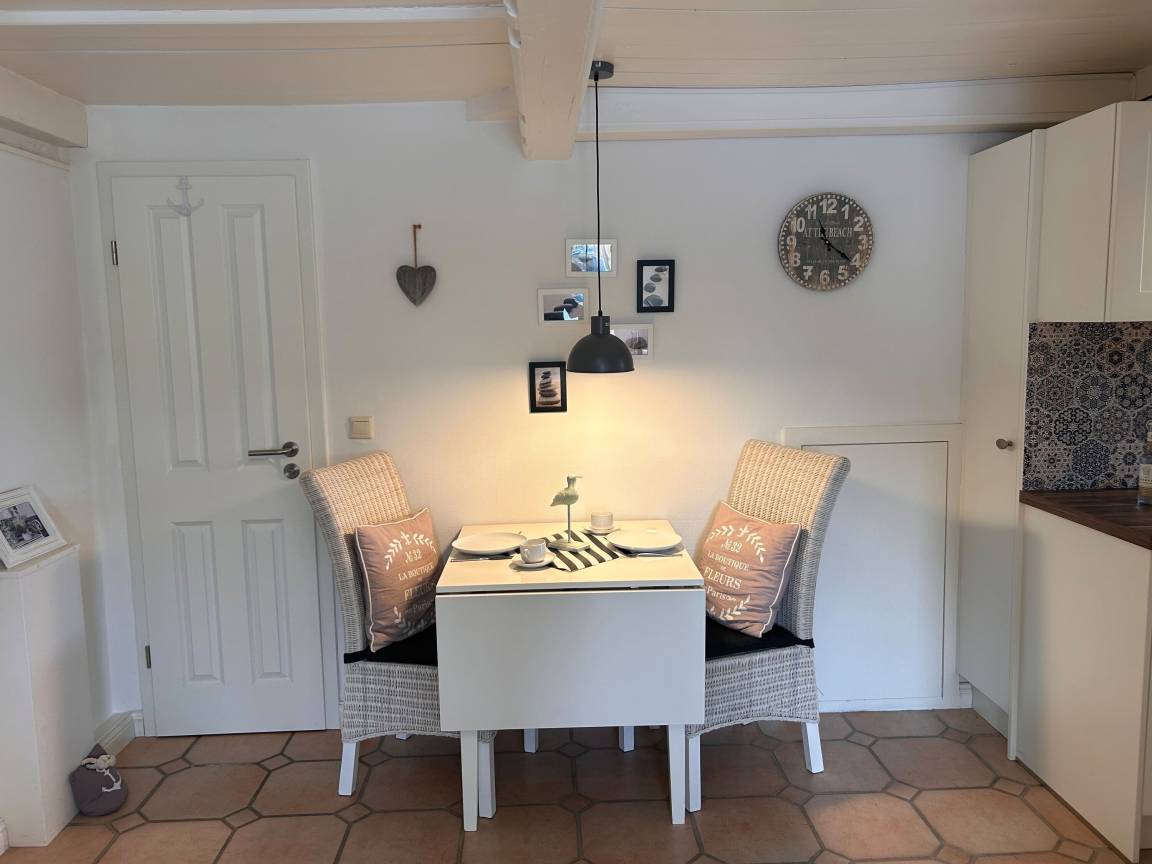 Die Erdgeschosswohnung bietet auf kompaktem Raum alles, was man für entspannte Urlaubstage braucht: einen geschmackvoll eingerichteten Wohn- und Essbereich mit moderner Küchenzeile, ein angrenzendes Schlafzimmer mit Doppelbett und ein kleines Duschbad. Ein Babybett findet ebenfalls problemlos Platz, falls die Kleinsten mitreisen. Haustiere sind in dieser Wohnung nicht erlaubt.