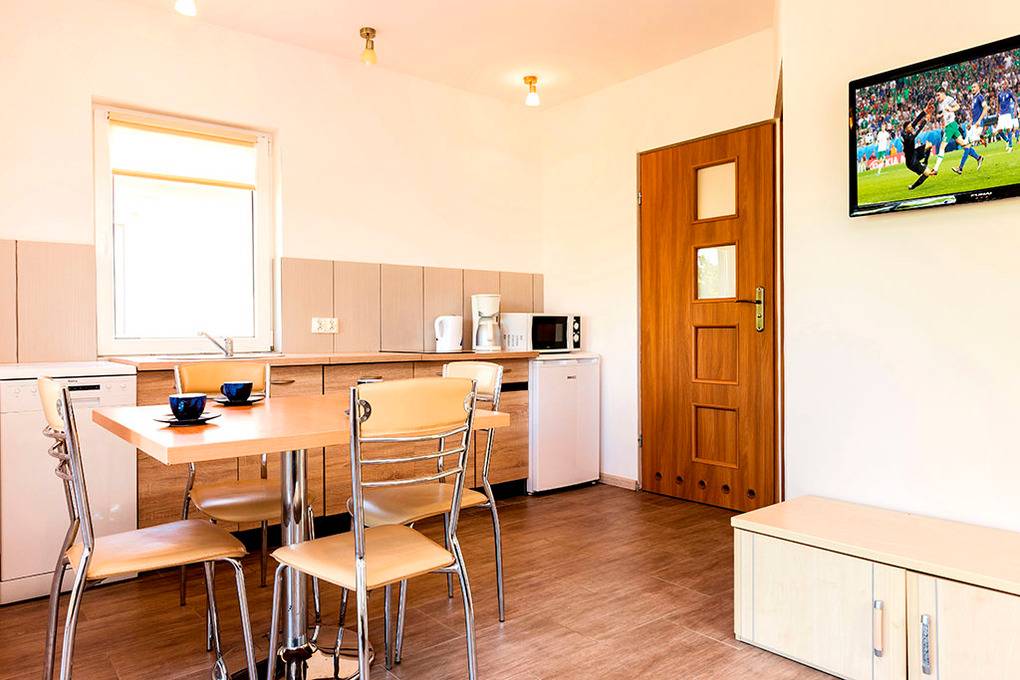 Nebenkosten Strom 1,20 €/Tag. Elektroheizkörper auf Wunsch 5 €/Tag. Kurtaxe. Bettwäsche vorhanden. Handtücher mitzubringen. Zusätzliche Leistungen 1 Pkw-Stellplatz im Preis inklusive. 1 Ladung Kaminholz im Mietpreis inkl. (nur verfügbar im Zeitraum 17.1.-6.6.26 und 5.9.-23.1.27). 1 Holzsack 10 €. Kaution 400 Zl. Haustier 10 €/Tag, max. 2 Hunde (Anmeldung).Räume & Aufteilung
