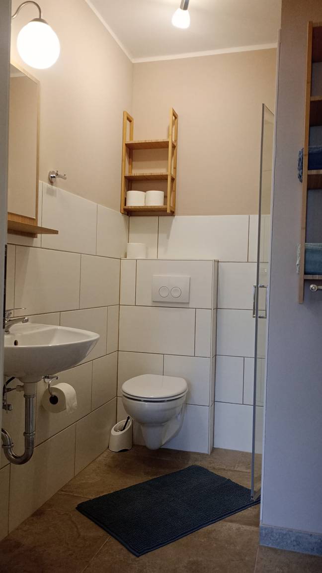 Die 37 m² große Ferienwohnung befindet sich in ruhiger Lage auf einem Vierseitenhof, auf dem wir selbst wohnen. Sie verfügt über ein Wohnzimmer mit einer gut ausgestatteten Küchenzeile und Esstisch, ein separates Schlafzimmer mit zwei Einzelbetten sowie ein Badezimmer.
