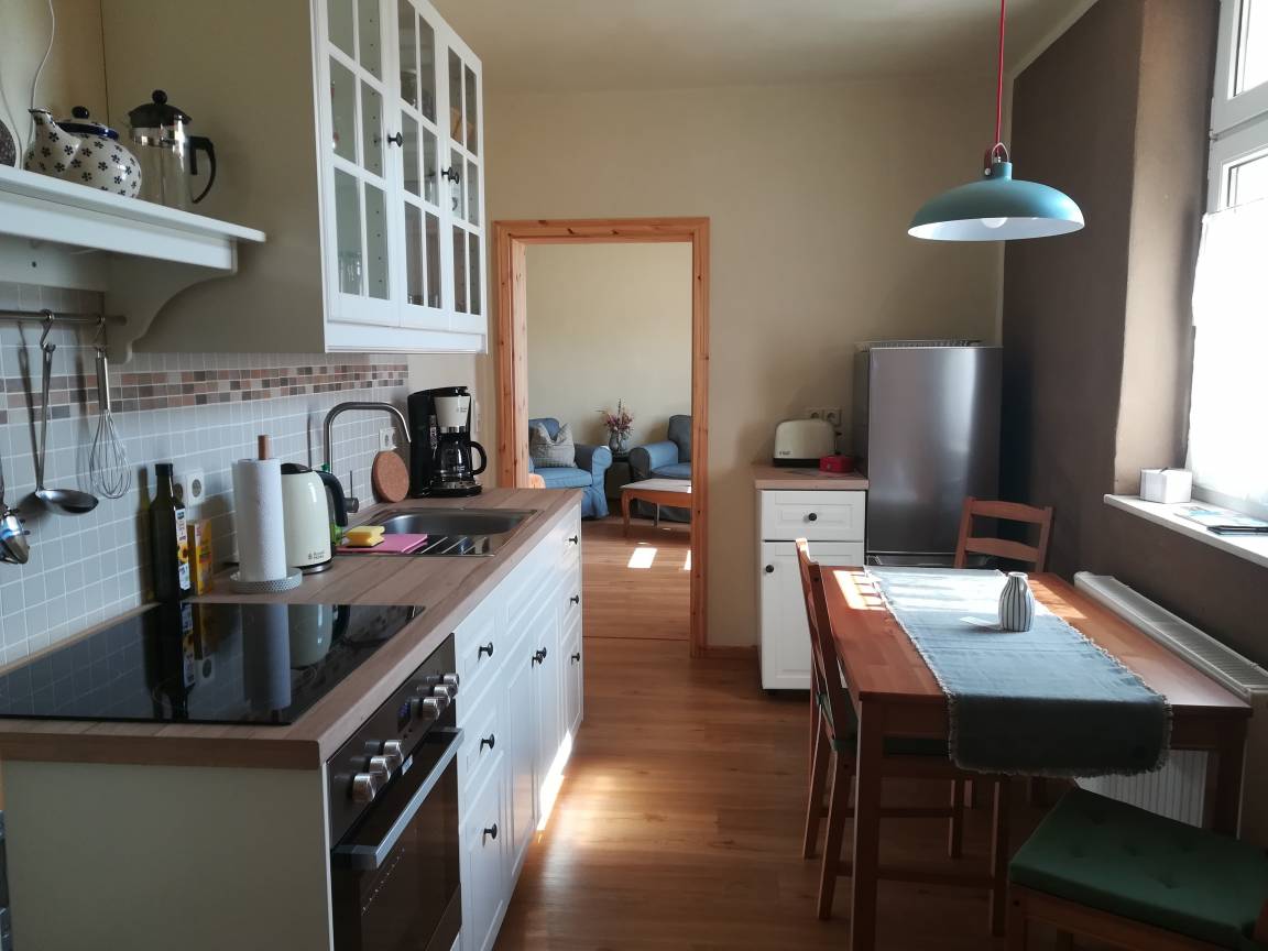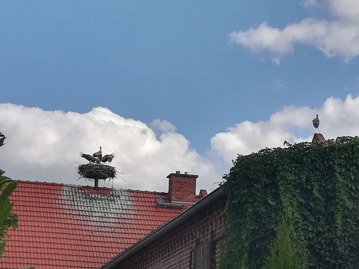 Die 52 qm große Ferienwohnung befindet sich auf einem Vierseitenhof, auf dem wir selbst wohnen, in ruhiger Lage. Die Ferienwohnung verfügt über eine gut ausgestattete Küche mit Esstisch sowie einem Bad, einem Wohn-/Schlafraum mit Doppelbett und einem Schlafzimmer mit zwei Einzelbetten. Nach Bedarf können ein Babyreisebett und eine zusätzliche Schlafliege zur Verfügung gestellt werden. Alle Wände sind mit Lehm verputzt und durch den Anstrich mit einer natürlichen Mineralfarbe gleicht der Putz die Luftfeuchtigkeit aus. Auf der Terrasse mit Sitzgelegenheit können Sie den Tag ausklingen lassen. Auf Wunsch werden ein Grill und Grillkohle bereitgestellt. Von der Ferienwohnung aus haben Sie unser Storchennest gut im Blick. Für Fahrräder haben wir eine Einstellmöglichkeit. Ganz stolz sind wir auf unseren Spielplatz im Dorf, der von unseren kleinen Gästen unbedingt ausprobiert werden sollte.