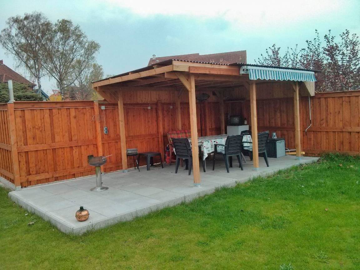 Ihnen steht en großer Garten mit Liegewiese, überdachter Terrasse und Trampolin zur Verfügung. Unser Steg ist nur 150 Meter entfernt.