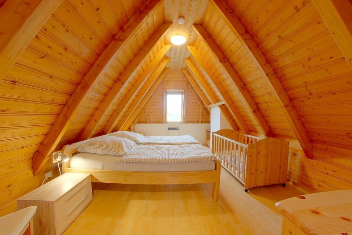 Im Obergeschoss befinden sich zwei getrennte Schlafräume für vier Personen. Elternschlafzimmer mit einem Doppelbett und Kinderzimmer mit 2 Einzelbetten. Ein Kleiderschrank ist im Flur eingebaut. Die Schlafzimmer verfügen über Verdunkelungsmöglichkeiten.