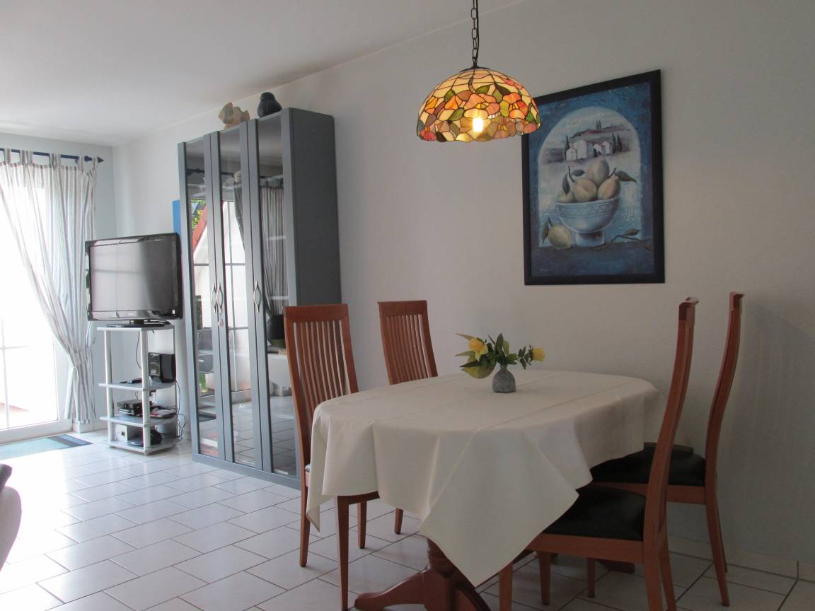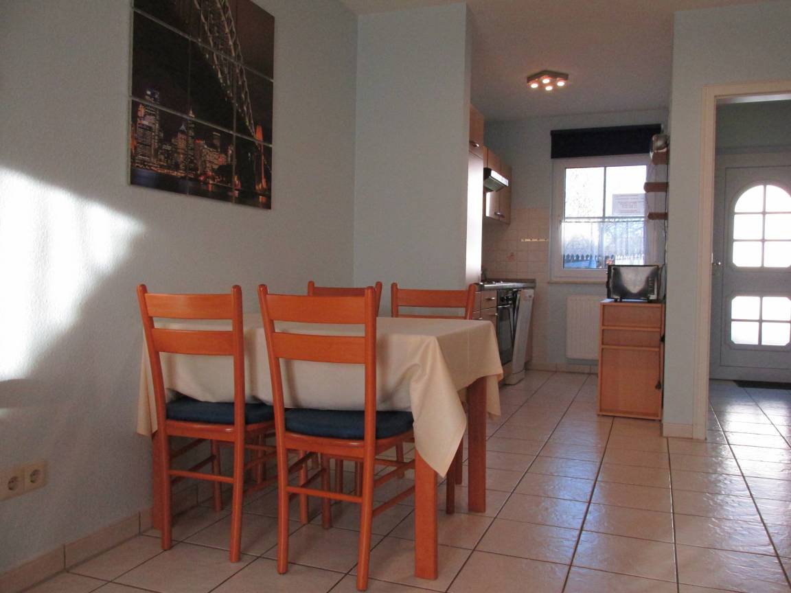 Der Wohnraum mit Essecke, Couchgarnitur & Flachbildfernseher, sowie die Küche mit Geschirrspüler sind im Erdgeschoss.