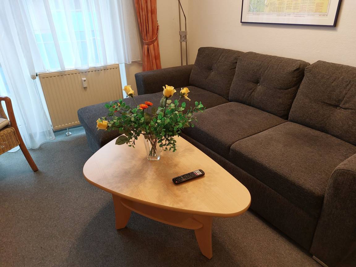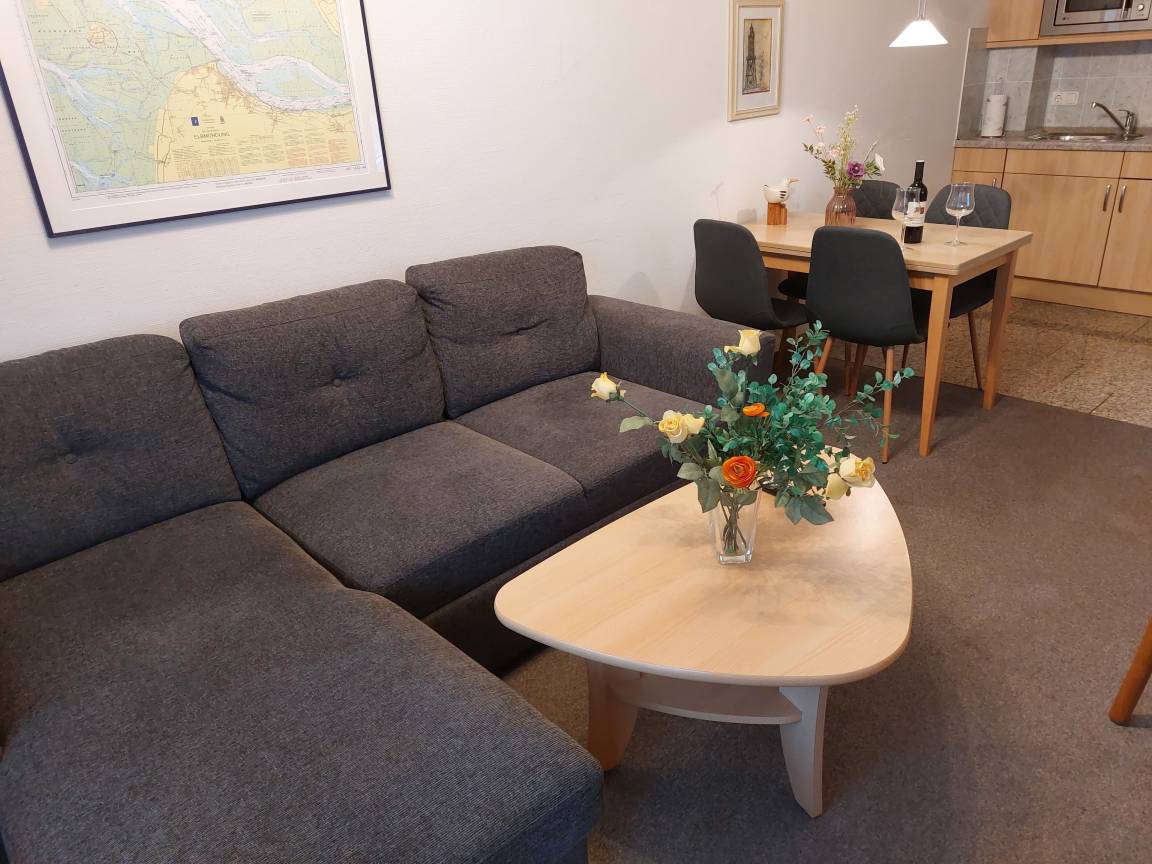 Wohnzimmer mit Essplatz, Schlafsofa.