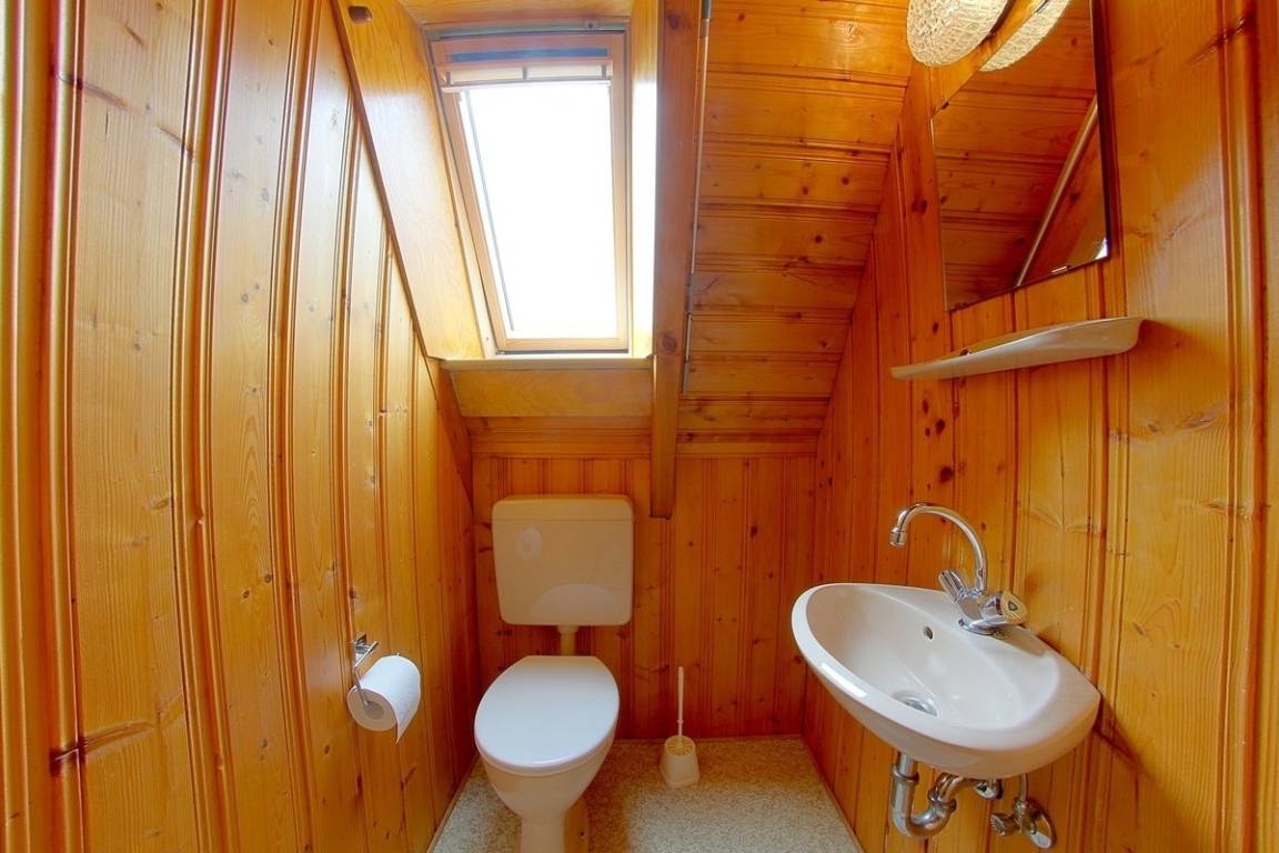 Die Schlafräume befinden sich im im Obergeschoss und sind mit Teppichboden versehen. Elternschlafzimmer mit Doppelbett, TV und Babyreisebett und Kinderzimmer mit 2 Einzelbetten, auch für Erwachsene geeignet (100 x 200 cm). Verdunklungsmöglichkeiten in allen Räumen. Desweiteren ein zusätzliches WC im Obergeschoss.