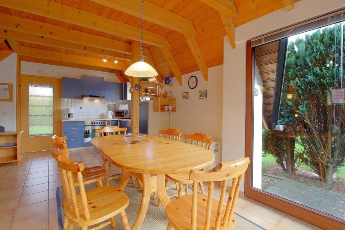 Das Haus bietet Platz für 4 Personen und ein Kleinkind. Es ist gemütlich eingerichtet, mit allem was man für einen schönen Urlaub braucht. Das Wohnzimmer ist komplett gefliest mit Kaminofen, großem Flat-TV, kostenloses WLAN und direktem Ausgang zur sonnigen Terrasse.
