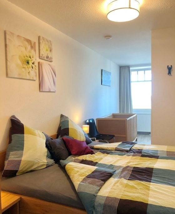 Für Ihre kleineren Kinder steht ein festes Kinderbett (70 x 140 cm) mit hochwertiger Matratze im Schlafzimmer zur Verfügung.