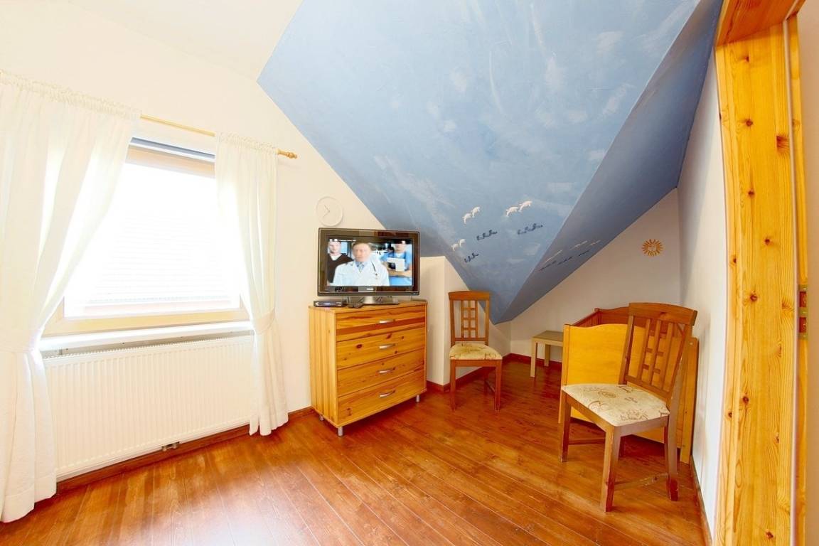 Im EG befindet sich ein Schlafzimmer mit Doppelbett und Internetradio und ein Bad mit Sauna mit Münzeinwurf. Alle Schlafzimmer und die Terrassentür haben Insektenschutz.