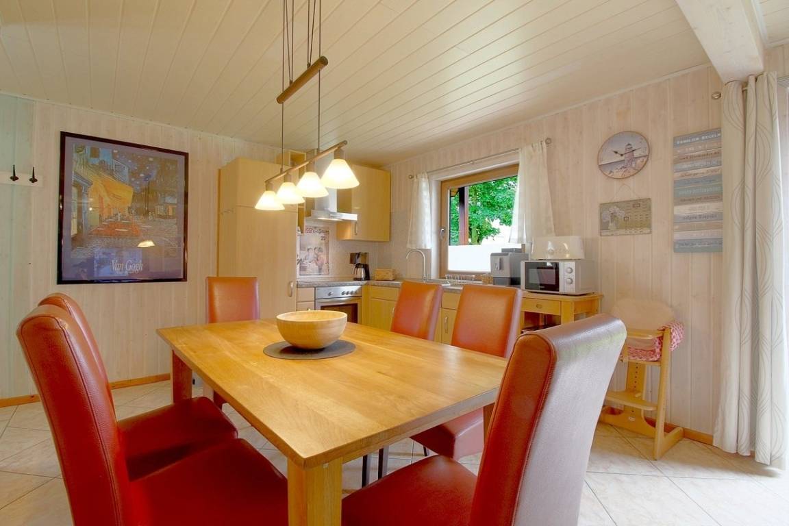 Im Wohn- Ess- und Küchenbereich mit Ausgang zur sonnigen Terrasse und Garten finden Sie Flachbildfernseher, Internetradio/CD und einen Bluray Player, sowie den Kamin. Das Haus bietet ausreichend Platz für die ganze Familie. In der Küche finden sie einen Kaffeevollautomaten