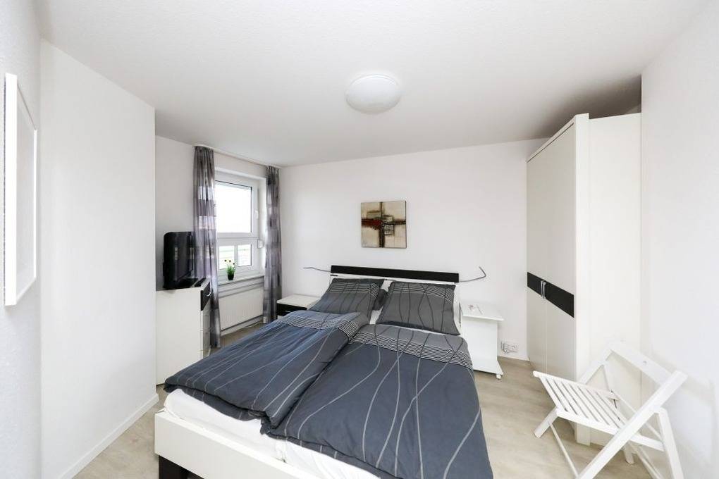 Im Schlafzimmer gibt es einen Fernseher, der über das Internet alle gängigen Fernsehprogramme sowie Apps wie Amazon Prime und Netflix nutzen kann, wenn ein Stick mitgebracht wird.