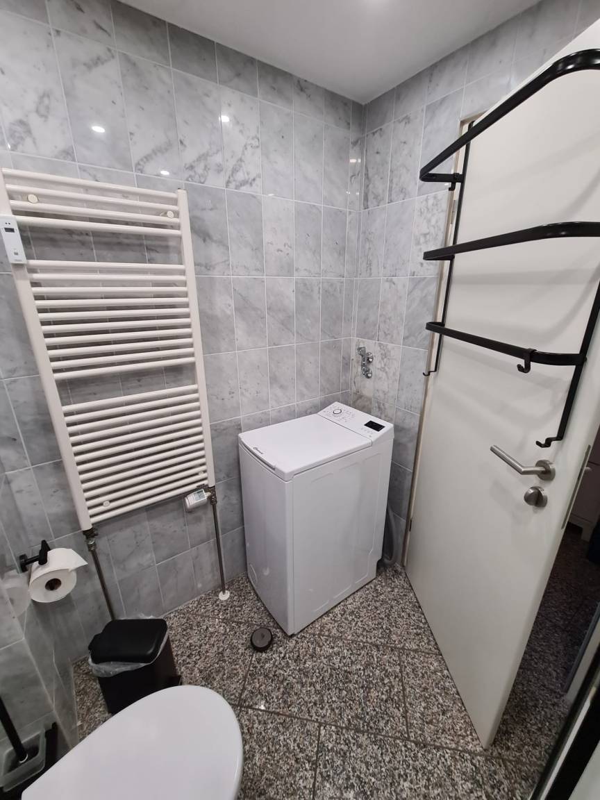in der ersten Etage befindet sich das Bad mit Dusche und Waschmaschine, sowie die Küche mit großzügigem Essbereich.