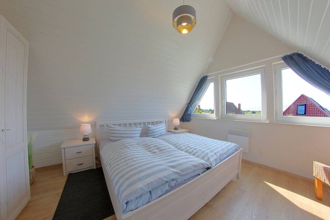 Im Obergeschoss finden Sie 2 Schlafzimmer, eins mit Doppelbett und ein weiteres mit 2 Einzelbetten.