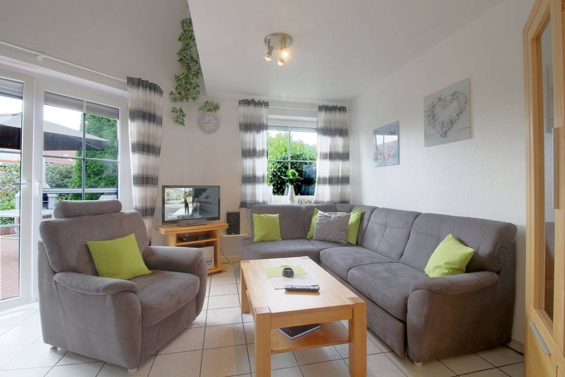 Der geschmackvoll eingerichtete Bungalow verfügt über einen offenen Wohn-, Küchen- und Essbereich mit Ausgang zur Terrasse. Vom Flachbild-TV, Sitzecke, Essplatz und Einbauküche mit E-Herd mit Backofen, Kühlschrank mit Gefrierfach, Kaffeemaschine, Toaster, Mikrowelle, Waschmaschine und komplettem Geschirr ist alles vorhanden.