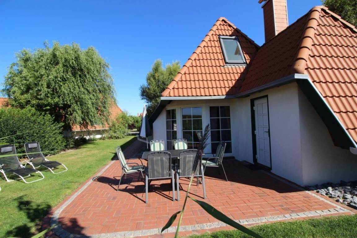 Auf der Terrasse mit Gartenmöbeln, Sonnenliegen und sogar einem Sankasten können Sie den freien Blick auf den Deich genießen