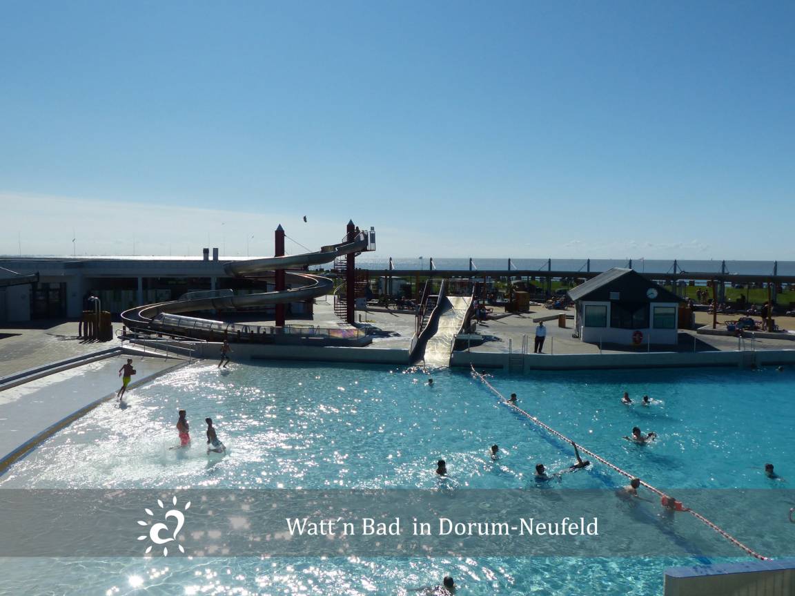 PACK DIE BADEHOSE EIN........ Nur wenige Schritte entfernt liegt das neue "Watt'n Bad". Neben einem beheizten Hallenbad ist das absolute Highlight das Wellen-Freibad.