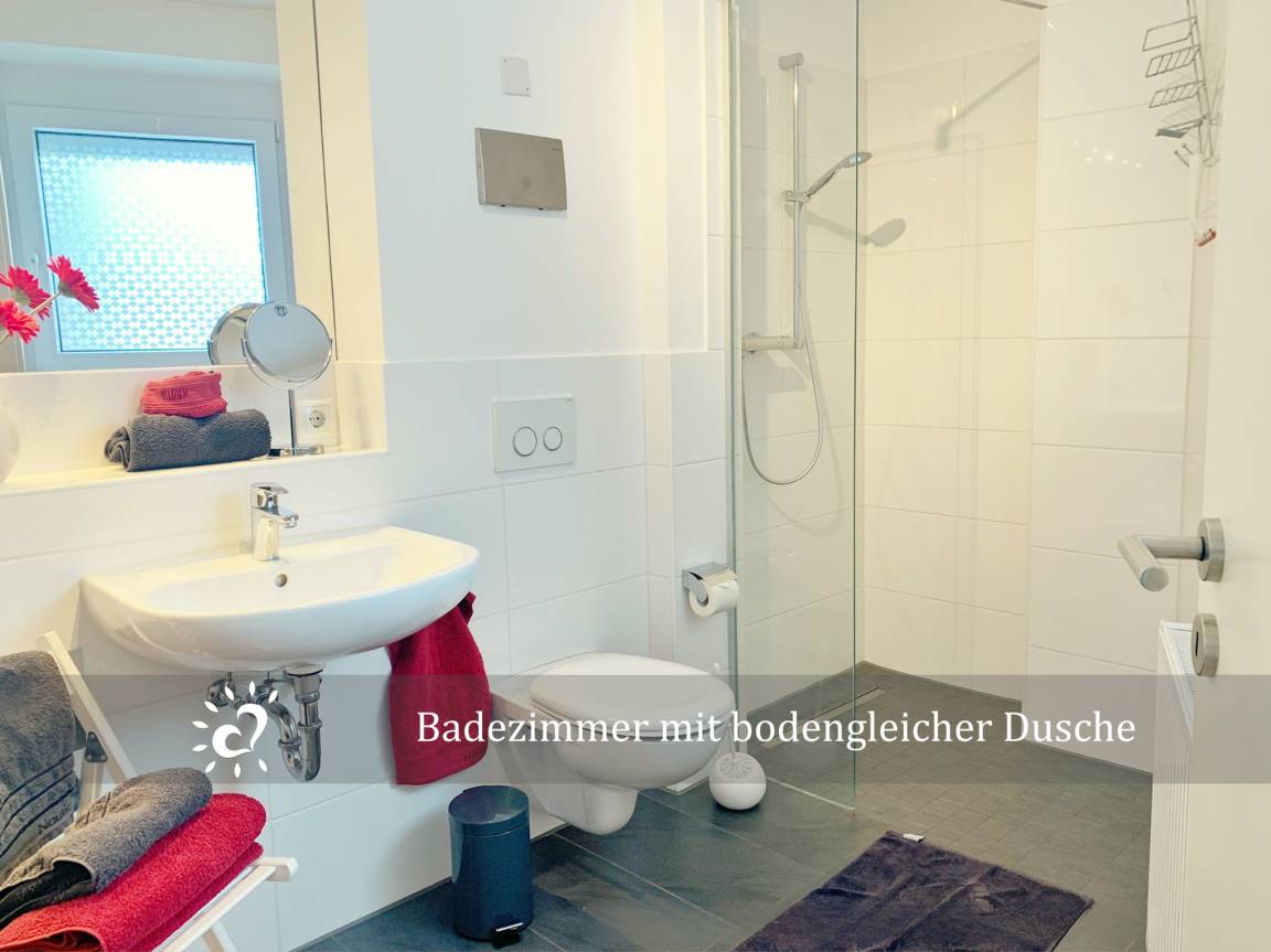 Dein Auto kannst du direkt am Haus auf dem eigenen Parkplatz abstellen, und mitgebrachte Fahrräder sind im abschließbaren Fahrradraum sicher untergebracht. Draußen wartet eine schöne Terrasse - perfekt für die erste Tasse Kaffee am Morgen oder einen Sundowner am Abend. Das moderne Bad mit bodentiefer Dusche sorgt für extra Komfort.