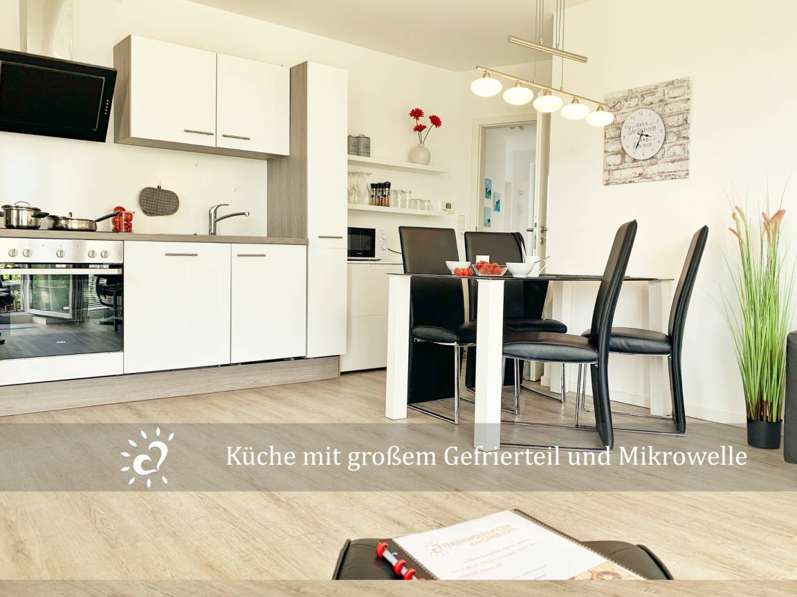Die Wohnung ist, dank der bodentiefen Fenstern lichtdurchflutet, modern und mit allem ausgestattet, was du für einen entspannten Urlaub brauchst. Das Wohnzimmer lädt mit einer bequemen Couch und einem großen TV zu gemütlichen Abenden ein, während die offene Küche mit Top-Ausstattung perfekt für gemeinsames Kochabende einladen. In den Schlafzimmern eines mit Boxspringbett, das zweite mit getrennt stehenden Betten sorgen die Außenrollläden für einen erholsamen Schlaf. Draußen wartet eine schöne Terrasse - perfekt für die erste Tasse Kaffee am Morgen oder einen Sundowner am Abend. Das moderne Bad mit bodentiefer Dusche sorgt für extra Komfort.