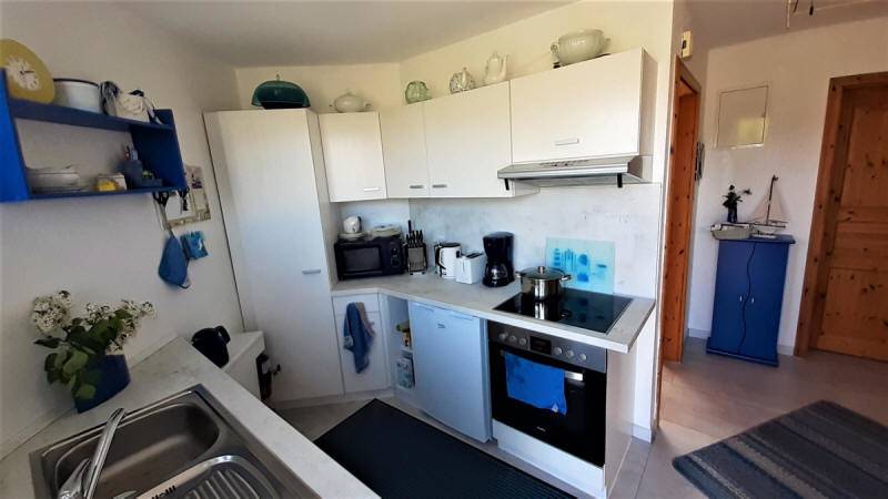 Vom großzügigen Wohn-Essraum geht es direkt zur Terrasse in Südlage. Eine separate Küche, ein Zimmer mit Doppelbett, ein Einzelzimmer, ein Bad (Fön/Personenwaage) mit Dusche und WC runden die Aufteilung ab. Leider kann aus Platzgründen ein Kinderreisebett nicht aufgestellt werden.