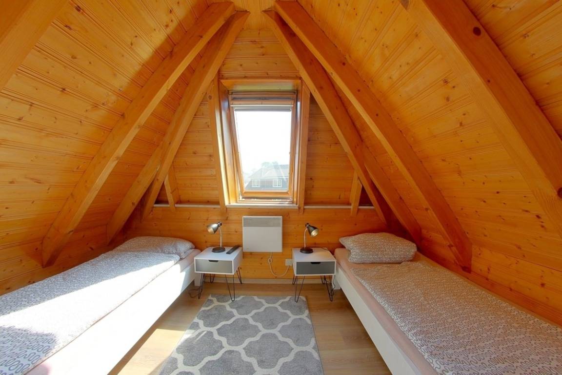 Im Obergeschoss befindet sich ein Schlafzimmer mit Doppelbett und Flachbild TV. Ebenso ein Schlafzimmer mit zwei Einzelbetten und Flachbild TV, alles mit[nbsp][nbsp] Vinylbodenbelägen. Die Schlafräume verfügen über Verdunklungsmöglichkeiten.