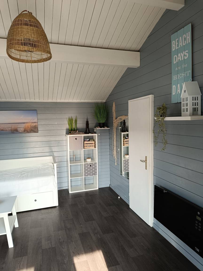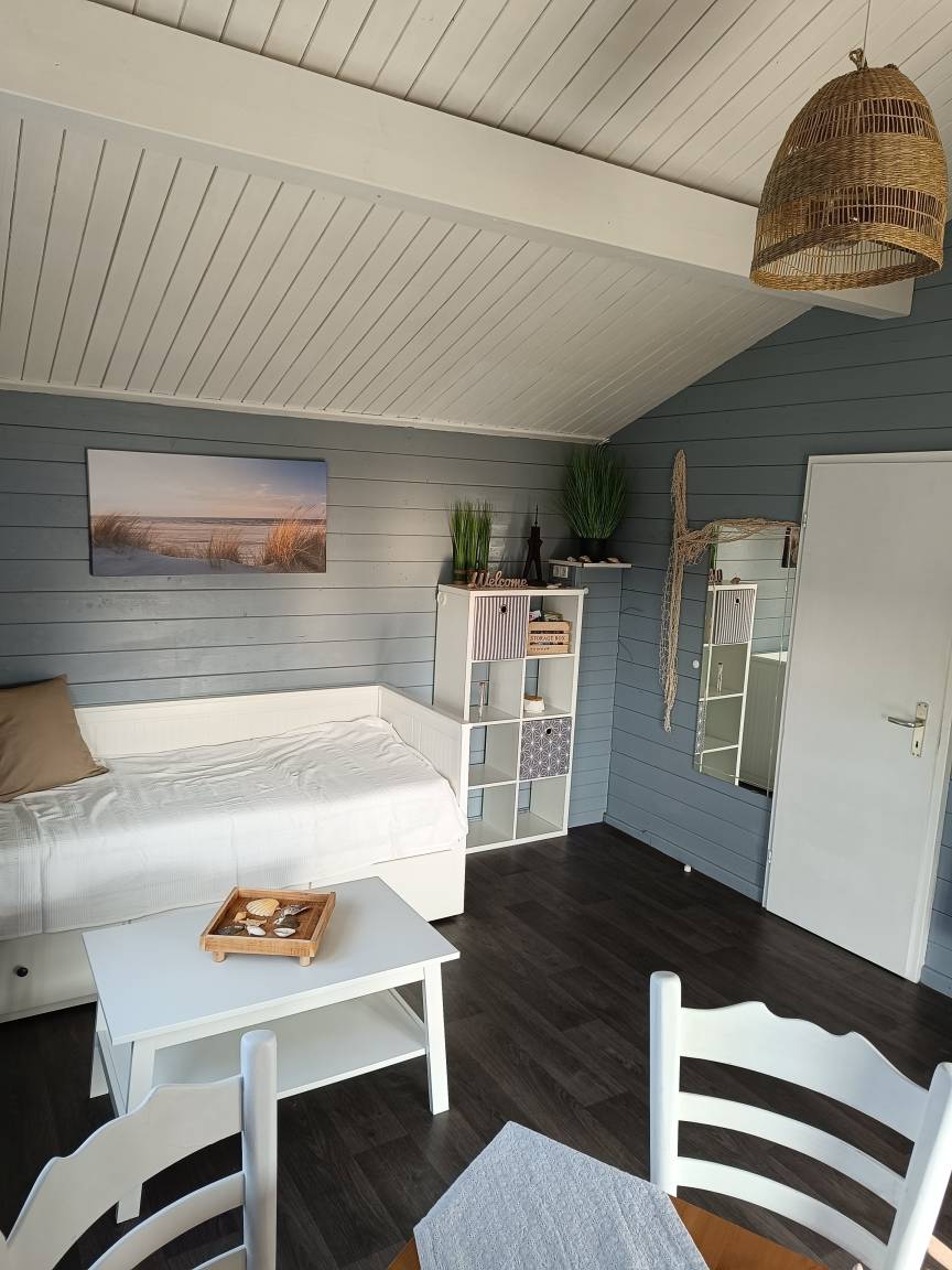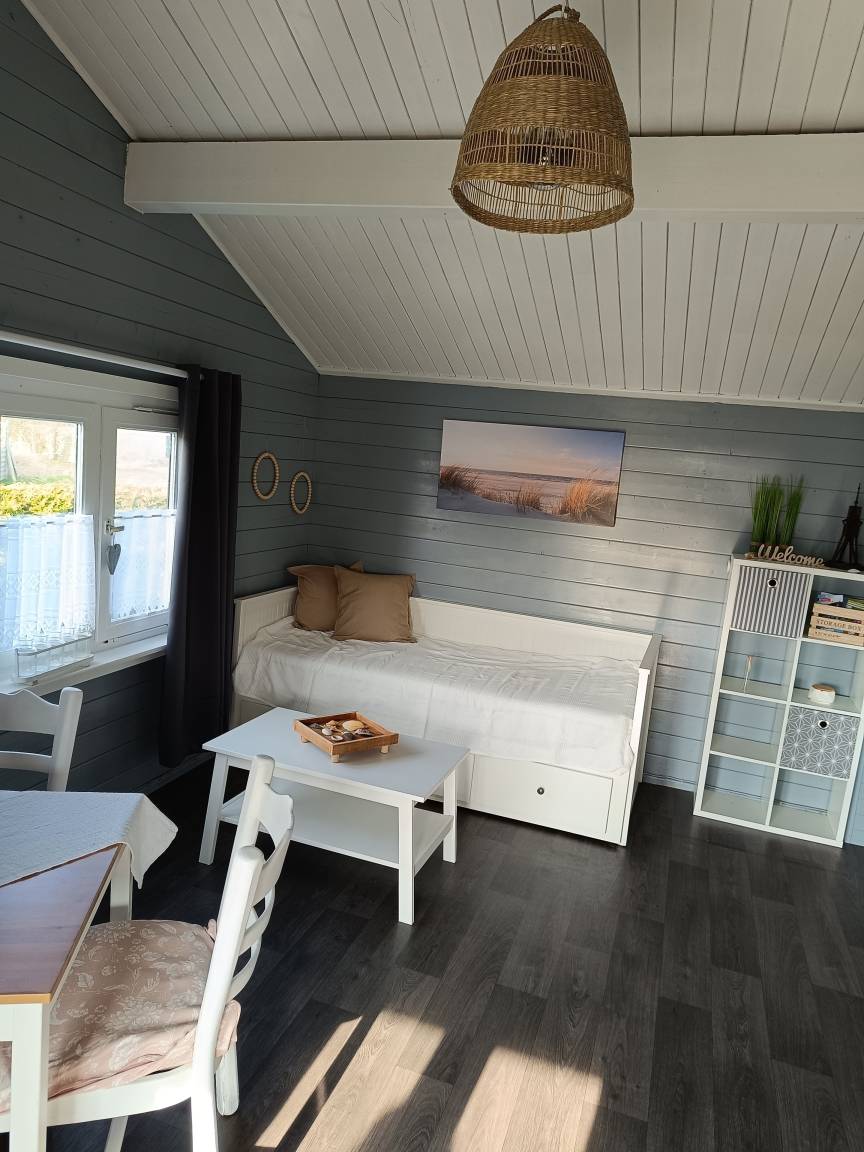 Das Haus ist ausgestattet mit einem gemütlichen Wohn-/Schlafzimmer, Etagenbett, Farb-TV, eine voll ausgestattete Küche, ein modernes Bad mit eigener Dusche, thermostatgeregelte Elektroheizung.