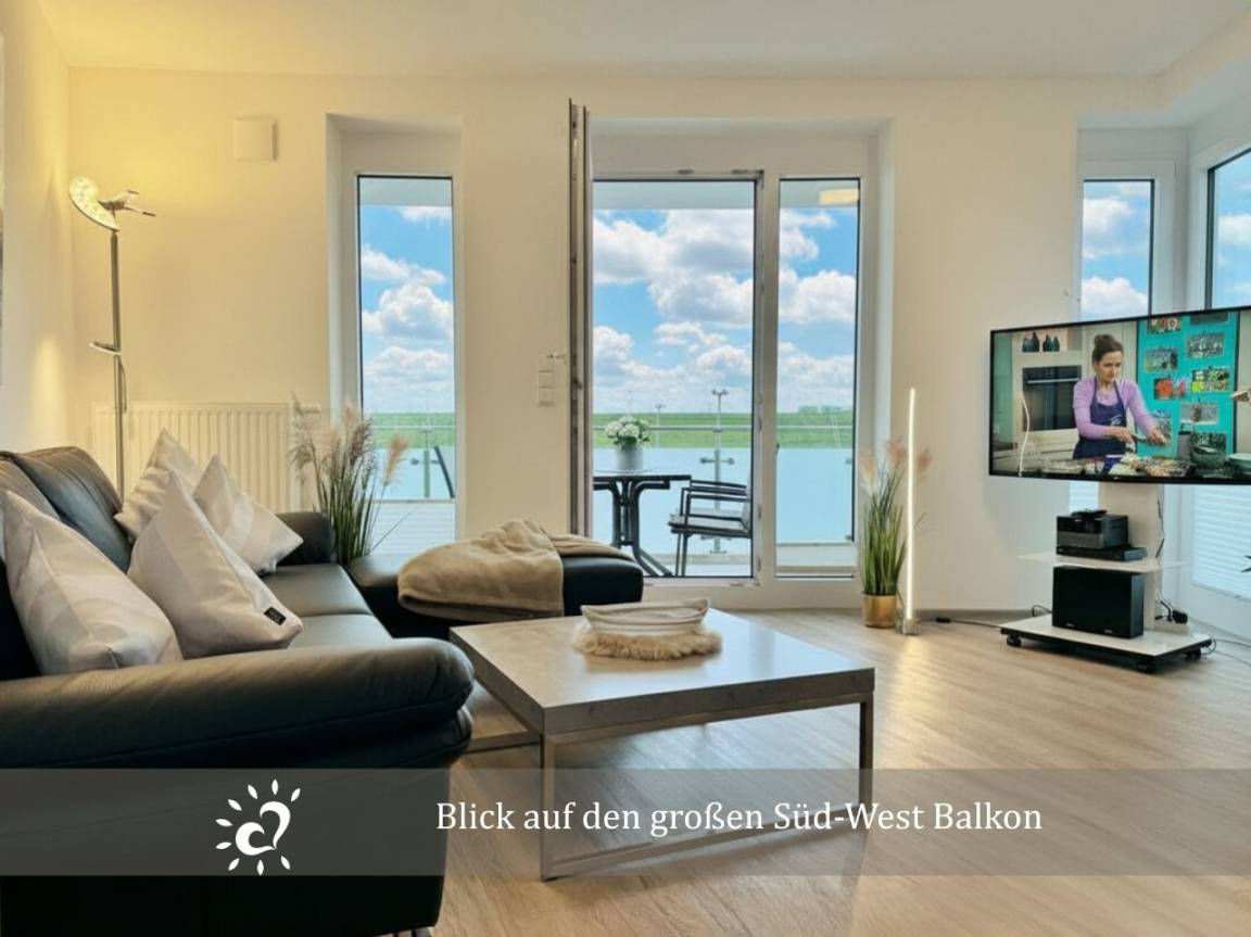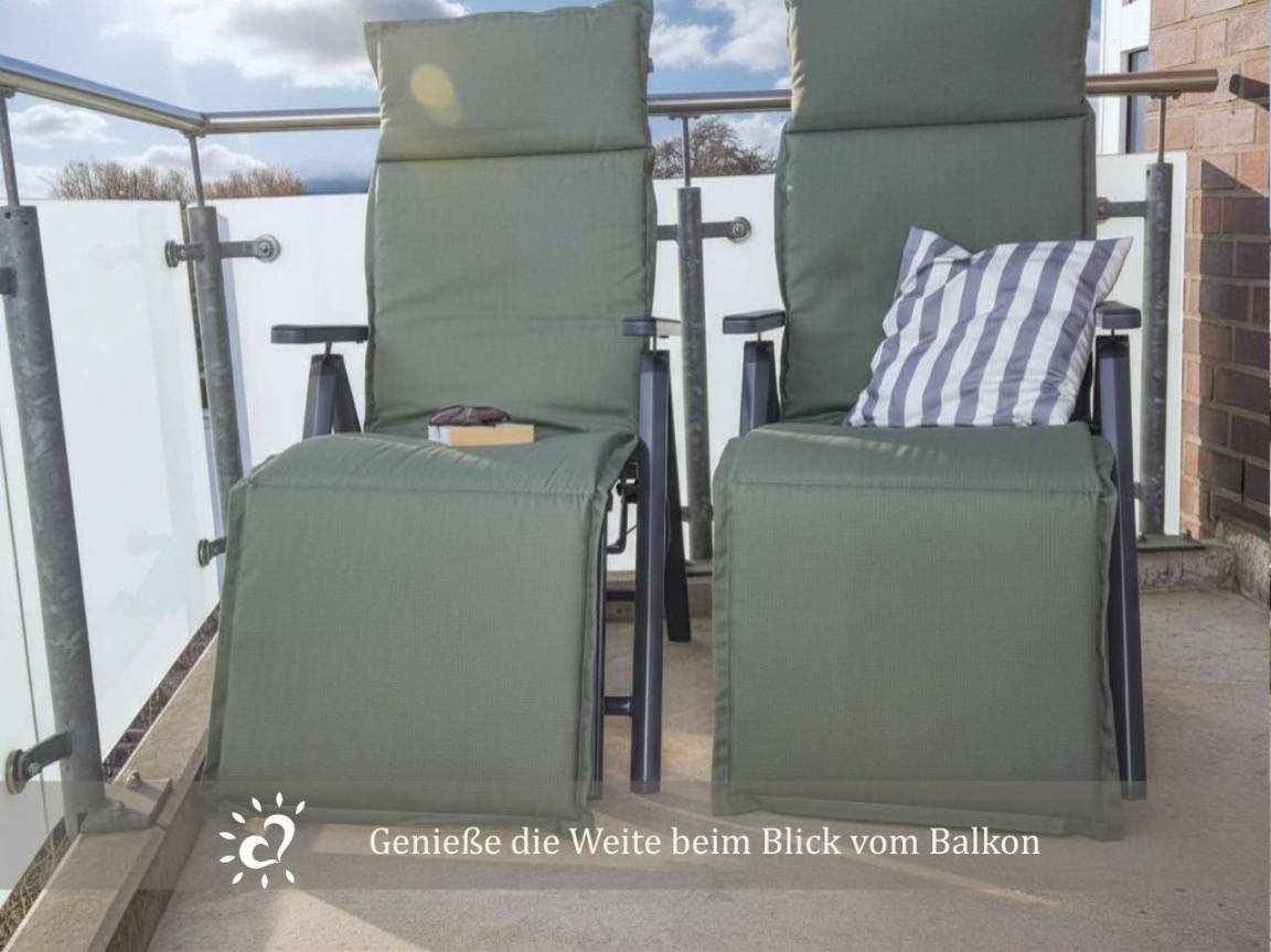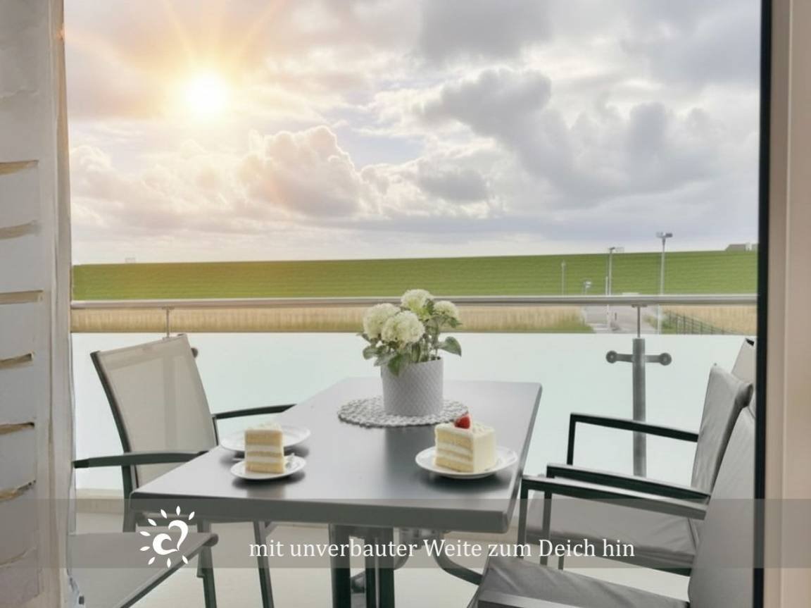 Es gelingt leicht zu Entspannen auf dem großzügigen Balkon. Von dieser 1aLage hat man eine perfekte Sicht auf die endlos erscheinende Deichline.