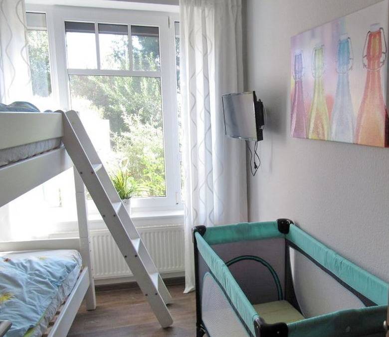 Die Ferienwohnung befindet sich im Hochpaterre des Hauses Jupiter und bietet Platz für insgesamt 4 Personen. Sie erstreckt sich auf einer Fläche von 54 Quadratmetern und verfügt über ein Wohnzimmer mit Essecke, eine separate Küche, ein Badezimmer mit Dusche (ohne Föhn), Badewanne und Fenster, ein Schlafzimmer mit Boxspringbett sowie ein Kinderzimmer mit Etagenbett. Zur Ausstattung gehören außerdem ein Kinderreisebett, ein Hochstuhl, diverse Spielsachen und ein Bollerwagen.