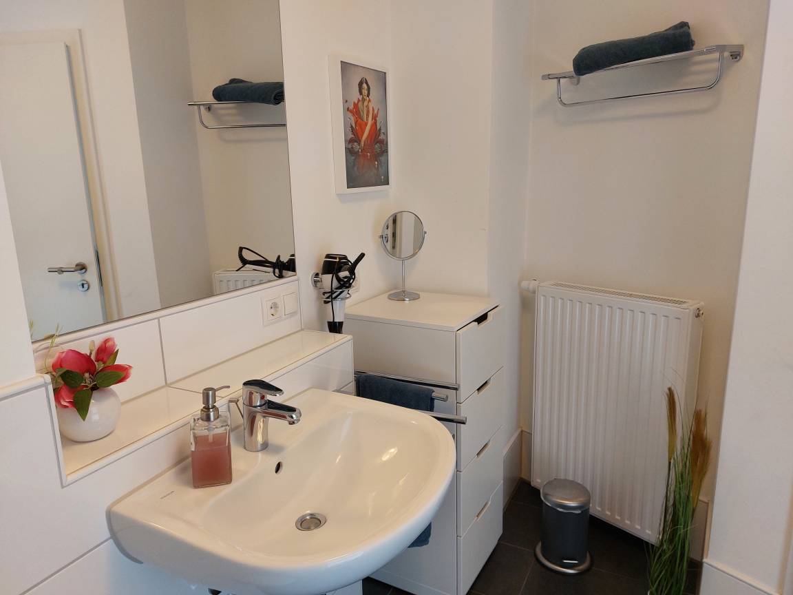 Zusätzlich steht Ihnen im Haus Apollo ein Fahrradkeller (abschließbar) und ein Waschmaschinenraum (Münzautomat) zur Verfügung. Ebenso steht ein Bügelbrett, Bügeleisen und ein Staubsauger bereit.