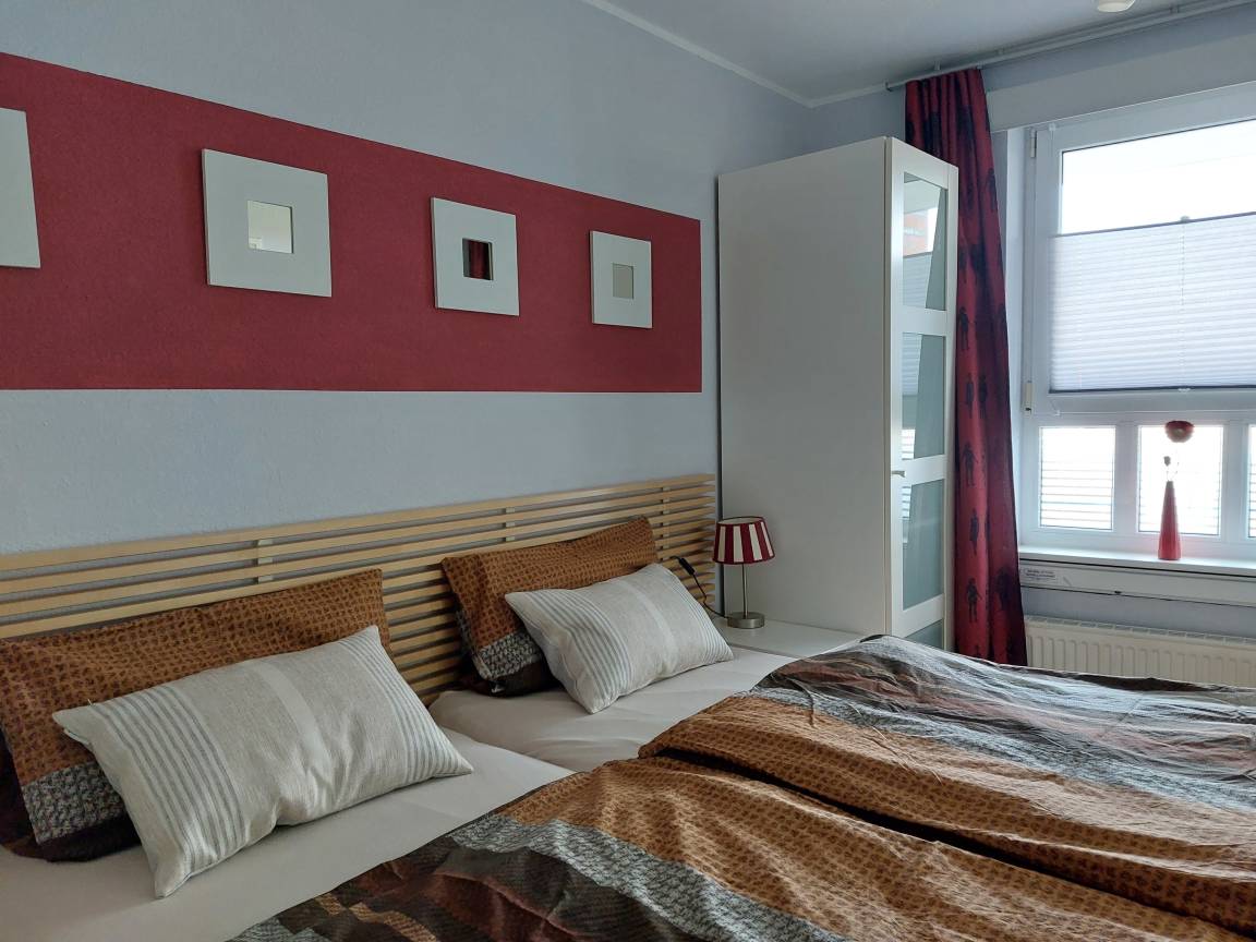 Das Schlafzimmer lädt mit einem 1,80m breiten Bett mit komfortablen Matratzen zu entspannter Nachtruhe nach einem Tag in frischer Nordseeluft ein.