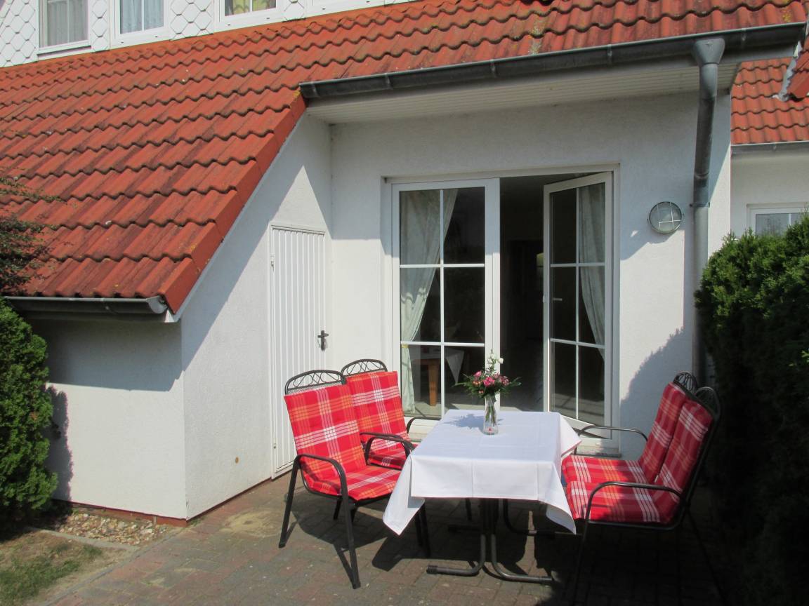 Zum Haus gehört ein kleiner Garten mit möblierter Terrasse und einen Gartenzaun, so das Ihr vierbeiniger Begleiter nicht ausbüchsen kann.