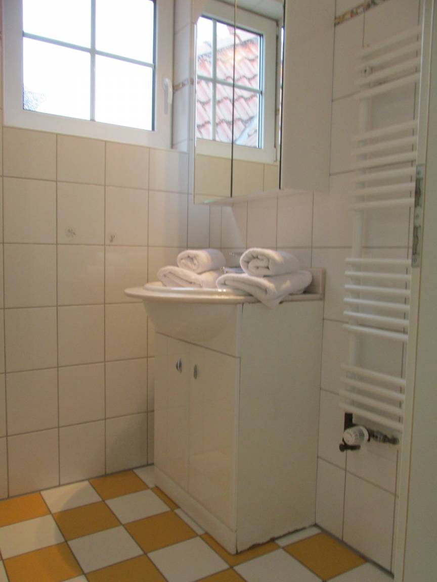 Das Duschbad mit Fußbodenheizung, Handtucheizung, Spiegelschrank, Fenster und Föhn ausgestattet.