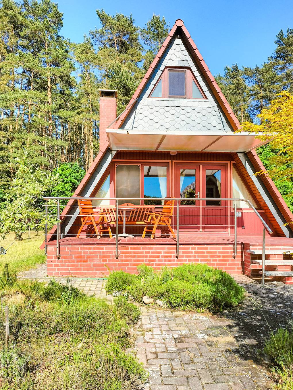 Ort: Canow. Herrlich ruhige Lage in einer kleinen Ferienhaussiedlung am Ortsrand zwischen Labussee und Pälitzsee. Badestrand am Labussee nur 400 m. Eingebettet inmitten der Mecklenburgischen Kleinseenplatte ist Canow mit zahlreichen Rad- und Wanderwegen ein Paradies für Wasser- und Naturliebhaber. Ortsmitte mit Lebensmittelladen, Restaurant 250 m. Rheinsberg mit Geschäften, Restaurants, preußischem Königsschloss 12 km. Mirow mit Inselschloss, Johanniterkirche 13 km. Müritz-Nationalpark 25 km.