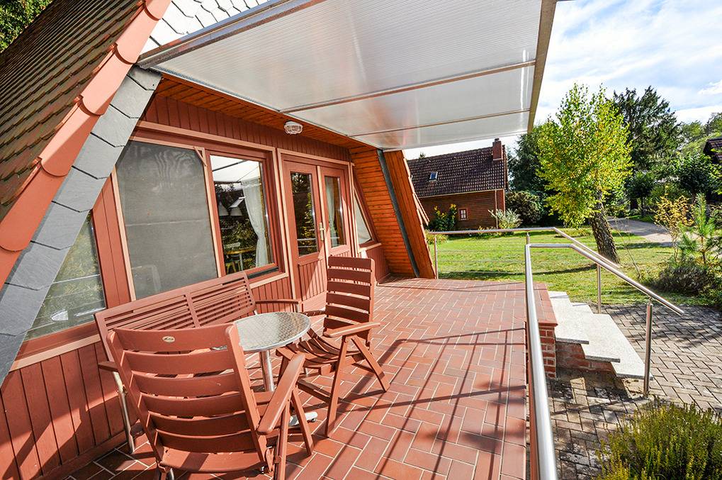 Haus: Geschmackvoll eingerichtete Finnhütte mit Sauna und Kaminofen. Moderne Ausstattung. Internetzugang über W-Lan. Waschmaschine. Heizung über Kaminofen, zusätzlich Fußboden- und Infrarot-Heizung. Nichtraucherhaus. Zwei große, überdachte Terrassen mit Sitzmöbeln. Schöner Garten mit Rasenflächen, Liegen, Grill, Saunahaus (Kamin- und Sauna-Nutzung jeweils gegen Gebühr). 1 Pkw-Stellplatz vorhanden.