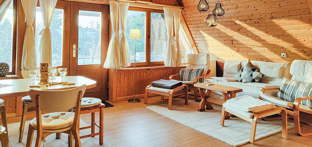 Nebenkosten 15 €/Tag (nur im Winter 01.10-31.03). Endreinigung 70 € (wird bei Buchung erhoben). Kurtaxe. Bettwäsche, Handtücher leihbar 12 €/Pers (Bestellung, wird bei Buchung erhoben). Zusätzliche Leistungen 1 Pkw-Stellplatz im Preis inklusive. Kostenloser Internetzugang über W-Lan. Sauna auf Wunsch 20 €/Nutzung. Kaminnutzung auf Wunsch 20 €/Aufenthalt (für Reinigung). Kinder Kinderbett zusätzlich zur maximalen Personenzahl ohne Berechnung (Bestellung). Haustier nicht erlaubt.Räume & Aufteilung