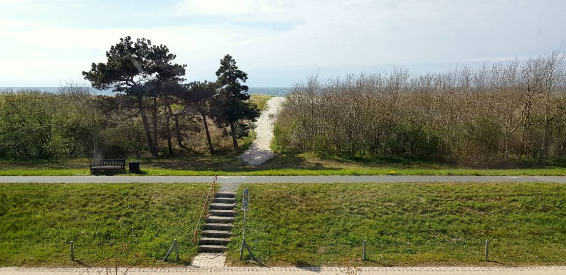 Ein breiter Sandstrand hinter den Dünen lädt zum Baden in einem der sonnenreichsten Orte Deutschlands ein. Zum feinen Sandstrand sind es nur 100 m.