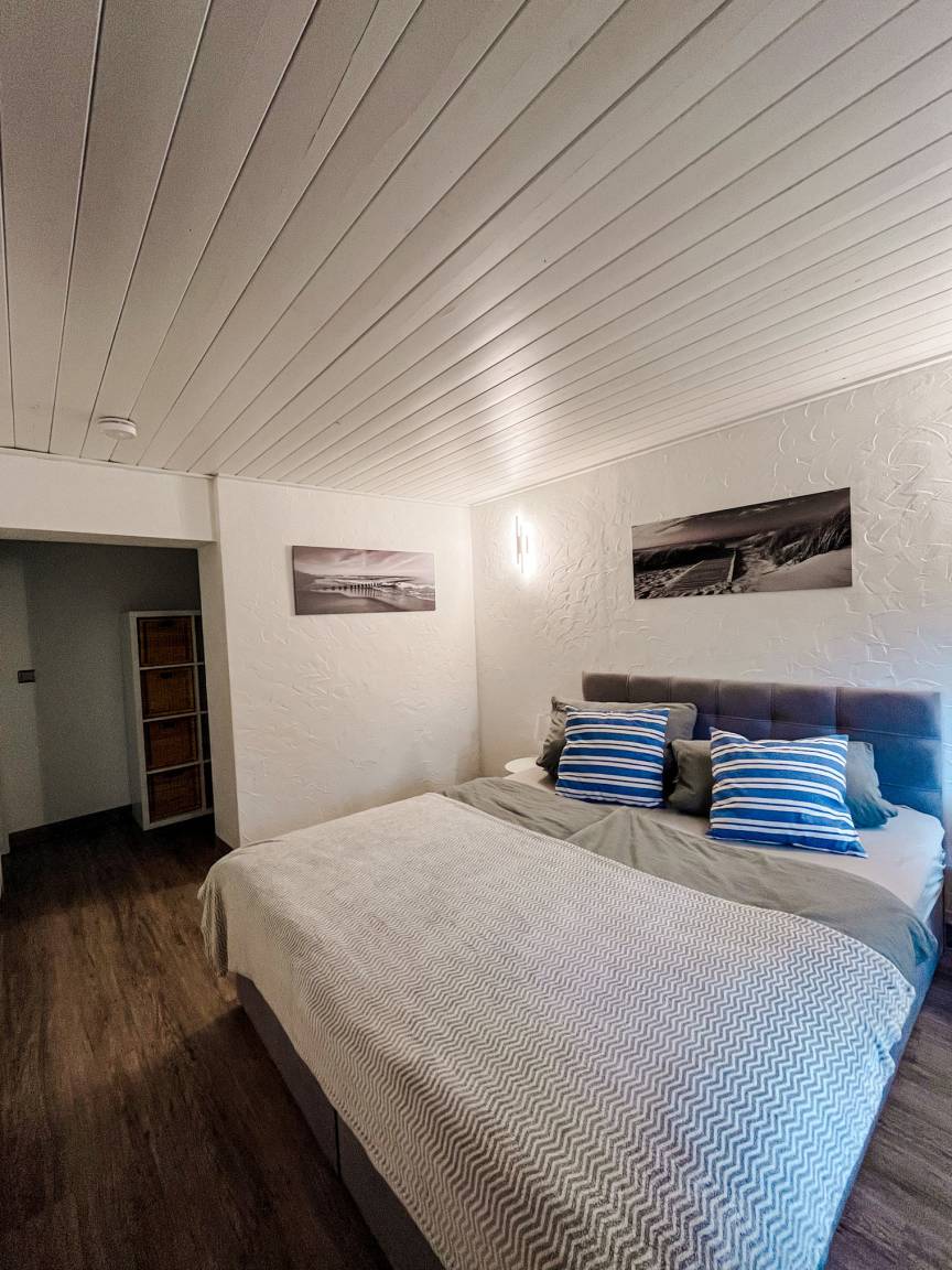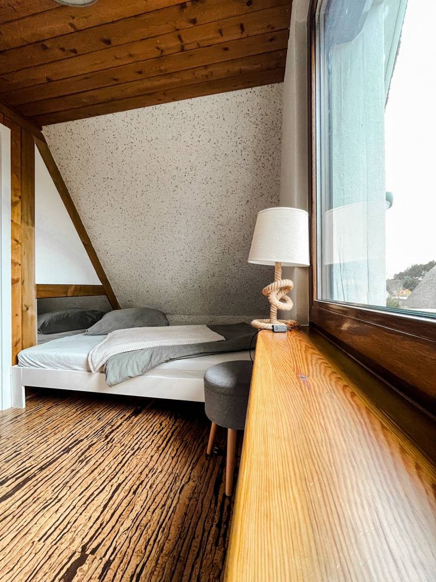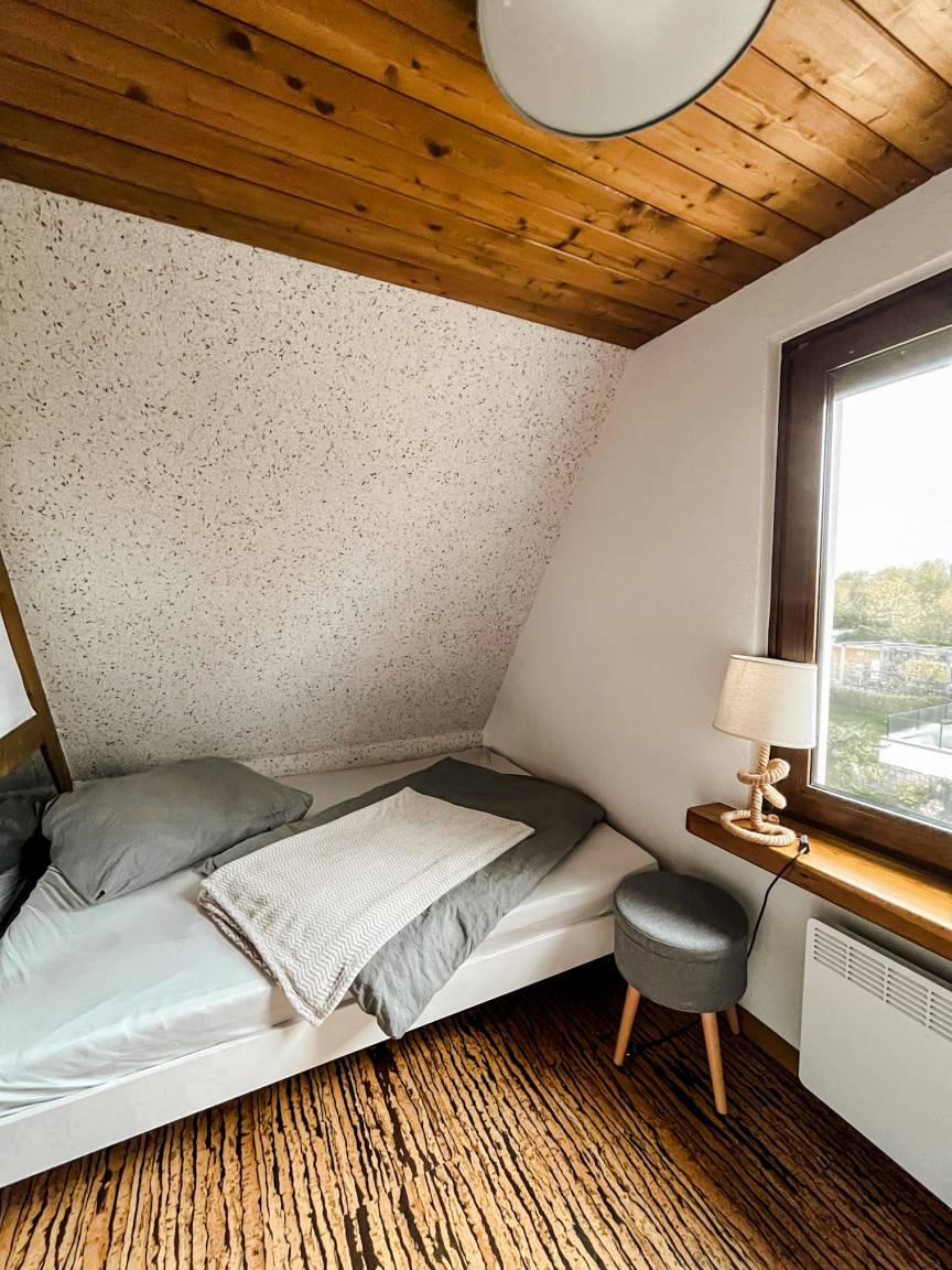In der oberen Etage finden Sie nach dem Umbau zwei Schlafzimmer, wobei das kleine Zimmer mit zwei Betten von 1,20m x 1,90m als Kinderschlafbereich genutzt werden kann. Im anderen Schlafzimmer finden Sie ein Doppelbett mit 1,80m x 2,00m Größe. Der Zugang zum Strand erfolgt über die Rückseite des Grundstücks und ist mit wenigen Schritten zu erreichen. Strom wird nach Verbrauch nur in der als Nebensaison (Wintermonate) bezeichneten Saison abgerechnet.