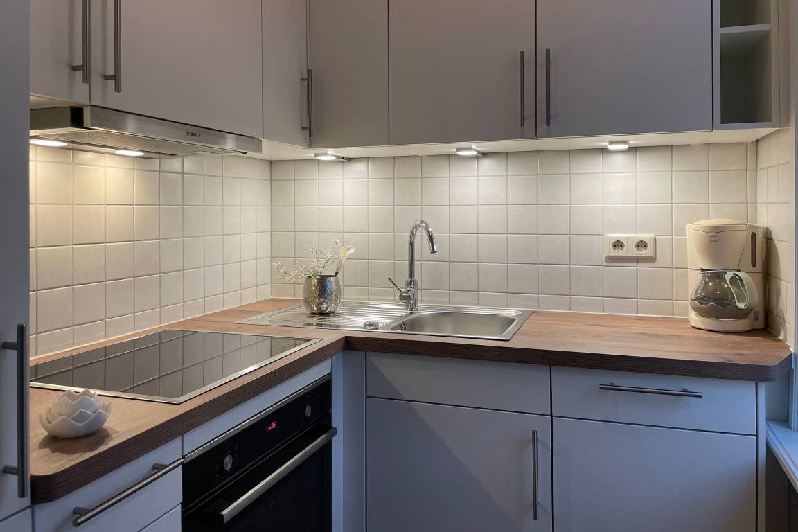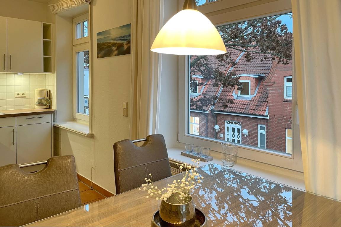 Das Galeriehaus ist ein historisches Gebäude von Wyk, welches außen immer noch den einstigen Charme von vergangenen Zeiten aufweist, doch innerhalb der Fassade umgebaut und renoviert wurde. Jetzt befinden sich im Galeriehaus 4 Wohnungen für je 2 Personen. Die zentrale Lage zur Innenstadt, dem Strand und der Nordsee, dem Meerwasserwellenbad Aqua Föhr und zu den Einkaufläden machen unsere Wohnungen im Galeriehaus sehr beliebt. Im Obergeschoss befindet sich die Wohnung Nolde mit ca. 45 qm bietet die modern eingerichtete Wohnung genügend Platz für 2 Personen. Der offene Wohnbereich mit einer gemütlichen Sitzgruppe, Flachbild-TV und Stereoanlage geht harmonisch in den bequemen am Fenster stehende Essbereich über, an welchen die gut ausgestattete Küchenzeile mit Ceranfeldherd und Backofen, Kühlschrank mit Gefrierfach, Wasserkocher und Kaffeemaschine (Senseo Duo) angrenzt. Liebevoll gestaltet und mit modernen Möbeln eingerichtet erstrahlt die Wohnung in einem neuen Glanz. Das Schlafzimmer, ausgestattet mit Boxspringbett und geräumigem Kleiderschrank ist freundlich gestaltet. Das hellgeflieste Bad mit Dusche und Fenster sorgt mit roten Akzenten gleich am Morgen bereits für gute Laune.