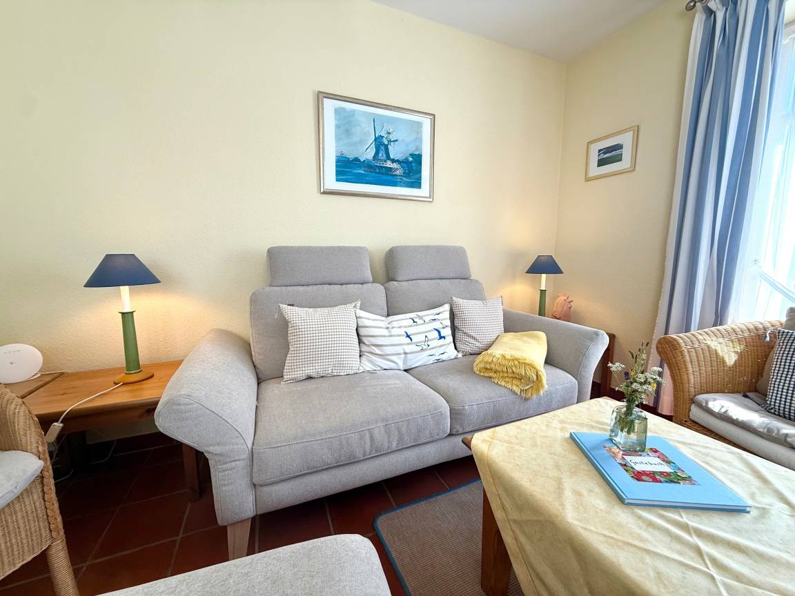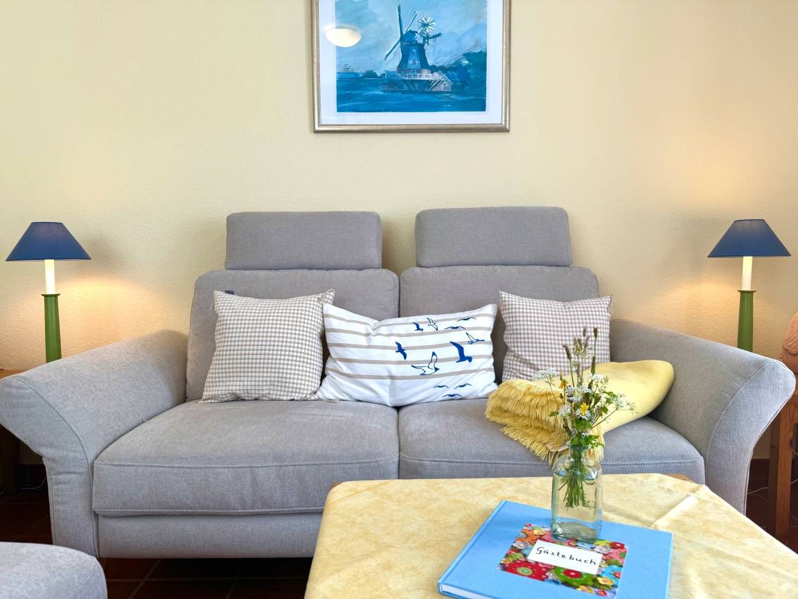 „Wir waren wieder sehr gerne in der Wohnung Efeublatt. Die Renovierung ist sehr schön geworden. Das neue Sofa ist toll. Schön wäre ein bequemer Relaxsessel. Die korbstühle sind hübsch und auch passend, allerdings für langes Sitzen an Regentagen dann doch unbequem. Wir freuen uns trotzdem auf den nächsten Aufenthalt im Sommer.“