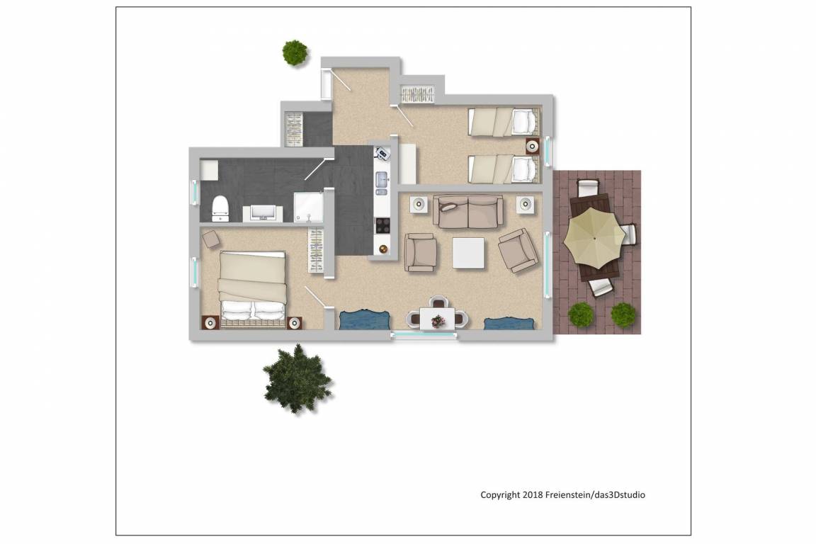 55 m² Ferienwohnung ∙ 2 Schlafzimmer ∙ 4 Gäste