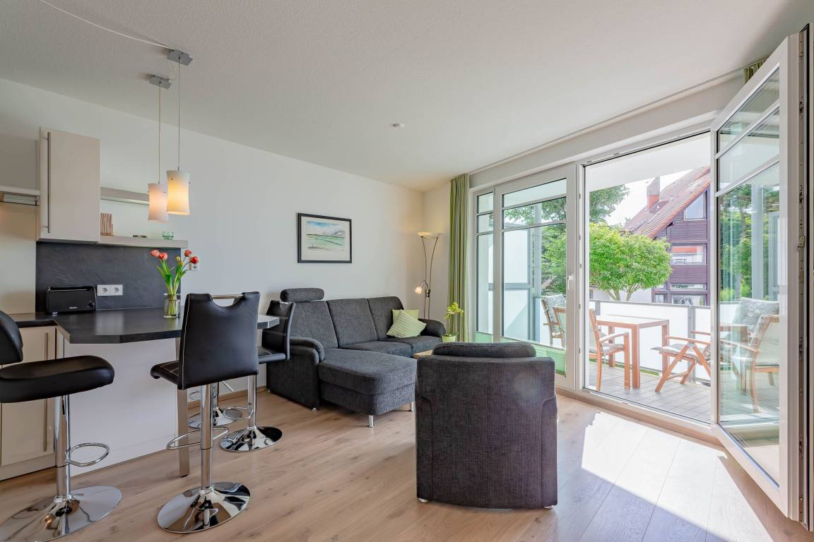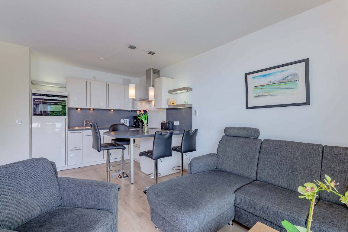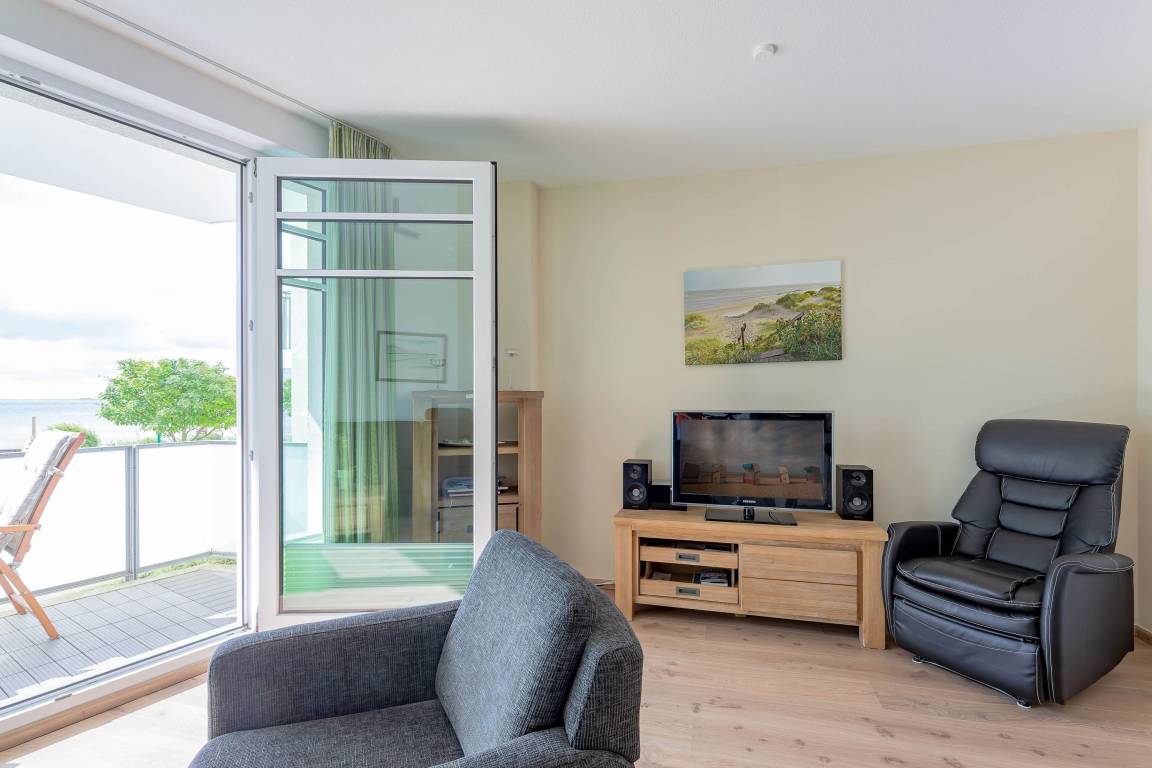 Wir begrüßen Sie im "Schloss am Meer", der exklusiven Wohnanlage direkt am Wyker Südstrand gelegen. Ihre Wohnung liegt im 1.Obergeschoss. Hier haben Sie einen Südost-Balkon ganz für sich allein und einen Blick auf die Nordsee und die Halligen. Dieser einzigartige Panoramablick ist unvergesslich. In nur wenigen Schritten befinden Sie sich auf der Promenade, die Sie ins Herz von Wyk führt. Hier laden Geschäfte zum Bummeln ein, Cafés und Restaurants verwöhnen Sie mit kulinarischen Köstlichkeiten.
