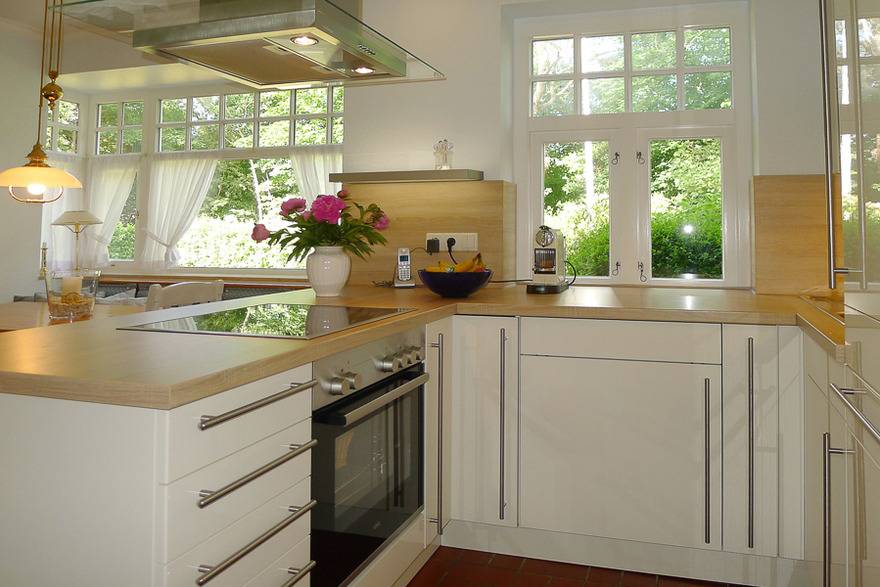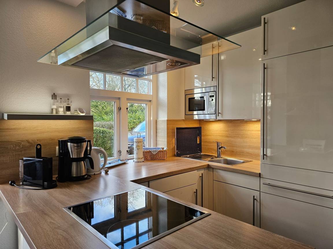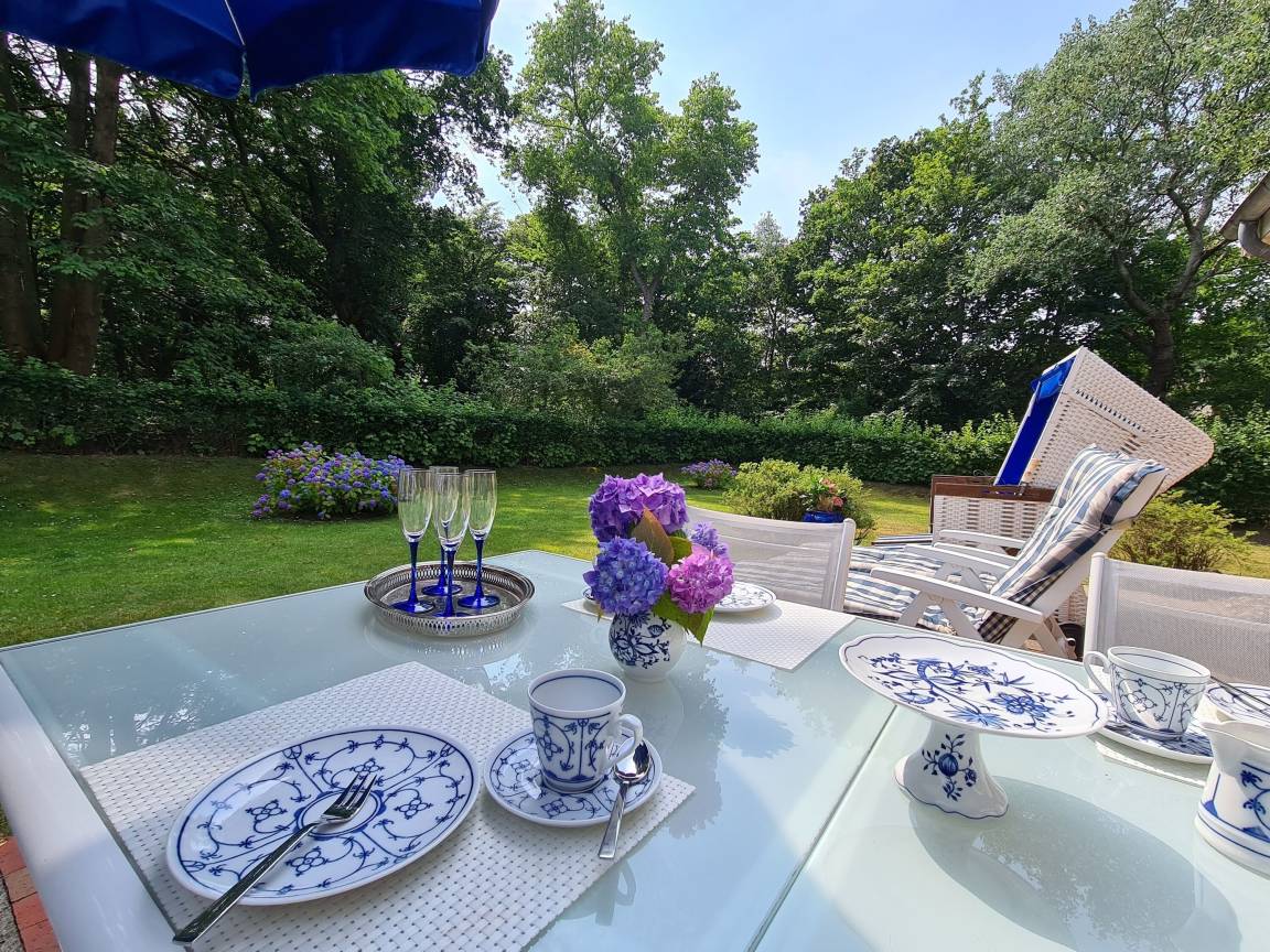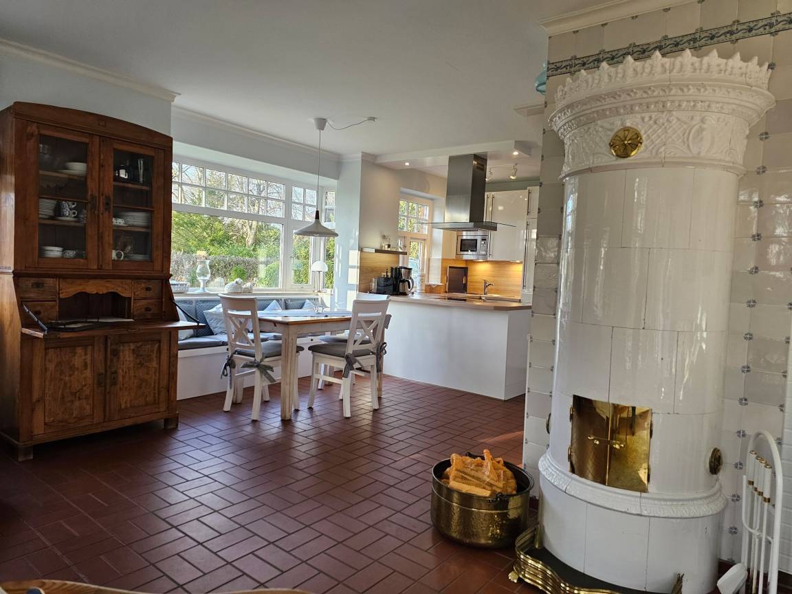 Im Erdgeschoß der Wohnung befindet sich ein Vorflur mit Gäste-WC, eine voll ausgestattete Küche inkl. Waschtrockner, ein Essplatz, eine gemütliche Couch, ein Mylin-Kachelofen für kühle Abende sowie eine Terrasse mit Strandkorb (während der Saison) und angrenzendem Garten. Im Obergeschoss befinden sich 2 Schlafzimmer und ein Duschbad (Badewanne mit Trennwand).