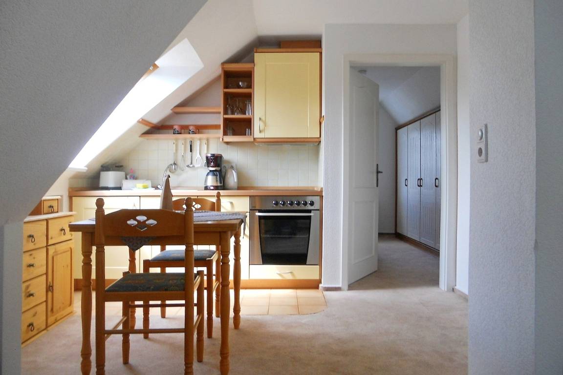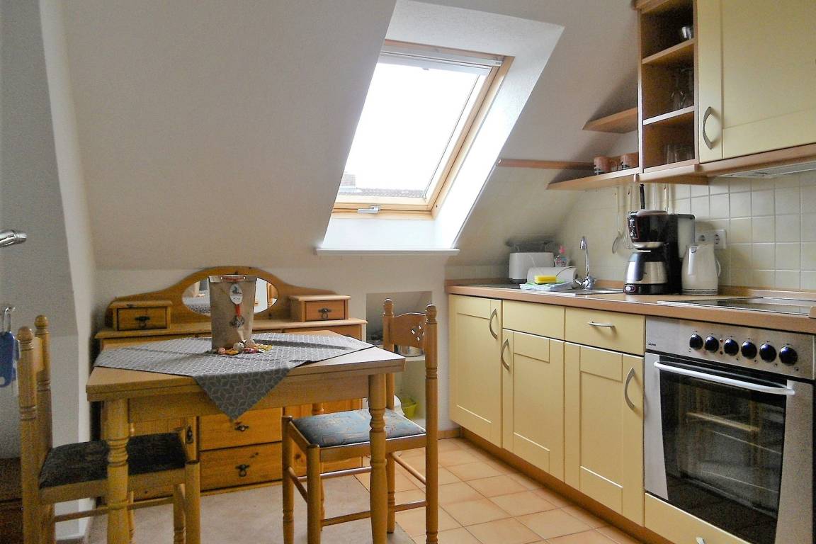 Unsere ca. 32 qm große Ferienwohnung Sieck 3 befindet sich im Dachgeschoß und eignet sich hervorragend für 2 Personen, die gerne in der Nähe des Zentrums und doch eine ruhige Lage wünschen. Der gemütliche Wohnraum unterteilt sich in die Küchenzeile mit einer Essecke und einer bequemen Couch, die zum Verweilen einlädt. Machen Sie sich einen netten Fernsehabend, lesen Sie ein gutes Buch, eine kleine Auswahl an Büchern steht Ihnen zur Verfügung oder nutzen Sie das vorhandene W-Lan-Netz der Wohnung und lassen einen erlebnisreichen Ausflugstag gemütlich ausklingen. Das anschließende Schlafzimmer ist behaglich und bietet neben dem Doppelbett einen geräumigen Kleiderschrank für Ihre Sachen. Von hier aus gelangen Sie in das funktionale Bad mit Fenster und Dusche, welches hell gefliest ist. Die Wohnung ist gemütlich und bietet alles, um wundervolle Urlaubstage in einer schönen Ferienwohnung zu erleben. Schauen Sie sich gleich die Bilder an. Wir freuen uns auf Ihren Anruf !
