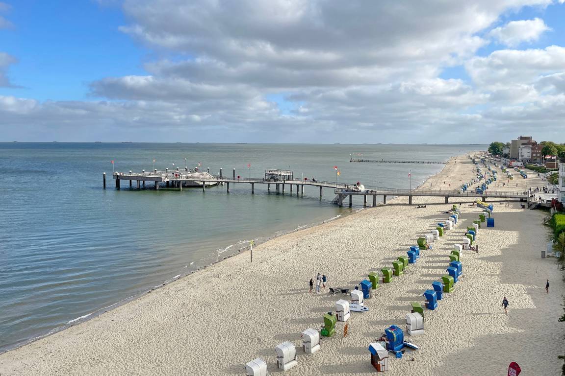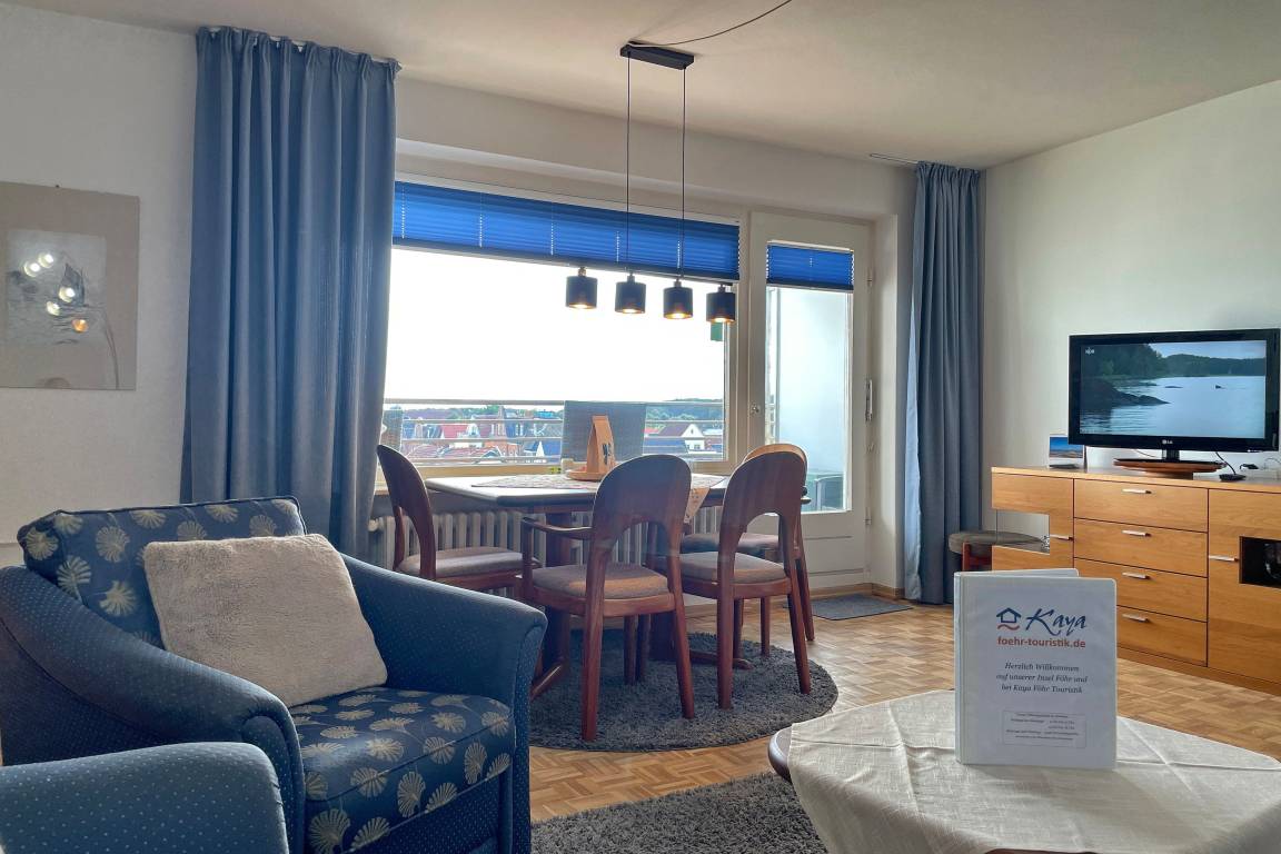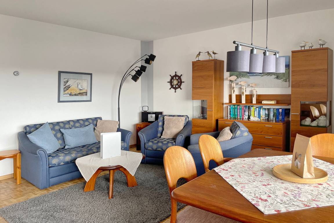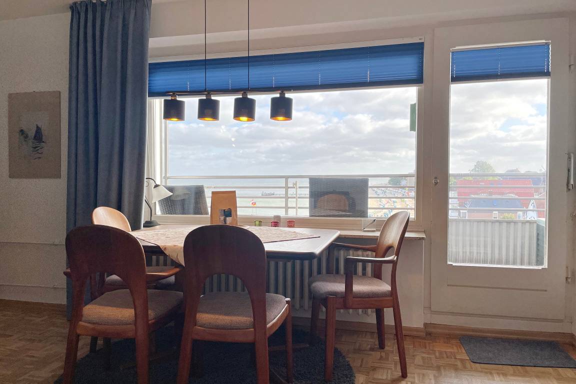 Unsere Ferienwohnung Atlantischer Hof 29 (ca.55m) ist bequem per Aufzug zum 5. Stock zu erreichen und bietet einen phenomenalen Ausblick auf die Nordsee mit ihren Halligen, den kreisenden Möwen und den Fähren.